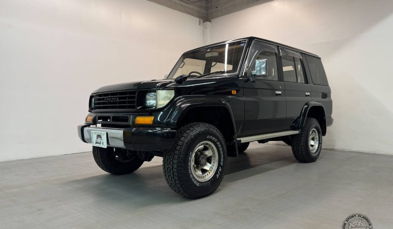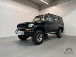 The exterior design remains true to Toyota’s iconic Land Cruiser lineage, offering a bold yet timeless appearance. The Black Metallic paintwork enhances the vehicle’s classic aesthetic, while the squared off body lines and high ground clearance reinforce its off-road ready stance. This Prado maintains a strong visual presence whether parked in an urban setting or navigating rugged terrain, making it as stylish as it is functional. We often refer to the 70 Series Prado as the JDM G-Wagen due to it’s iconic boxy styling.
