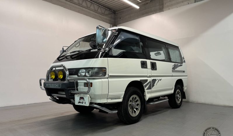 The L300 Delica is easily recognizable in a crowd, though, perhaps not intentionally. SUVs of the era were commonly found with the “boxy” styling that this example displays and consumers loved it. This example is finished in Color Code W09 Summit White, with the Active World decals still in good shape. Gloss black window surrounds offer contrast around the cabin, furthering the look of this already stand-out van. Found with the factory optioned “Monsoon Guards”, chrome push bar with yellow fog lights, side steps, rear parking mirror, and door handle Jewelry guards, this example was certainly well optioned.