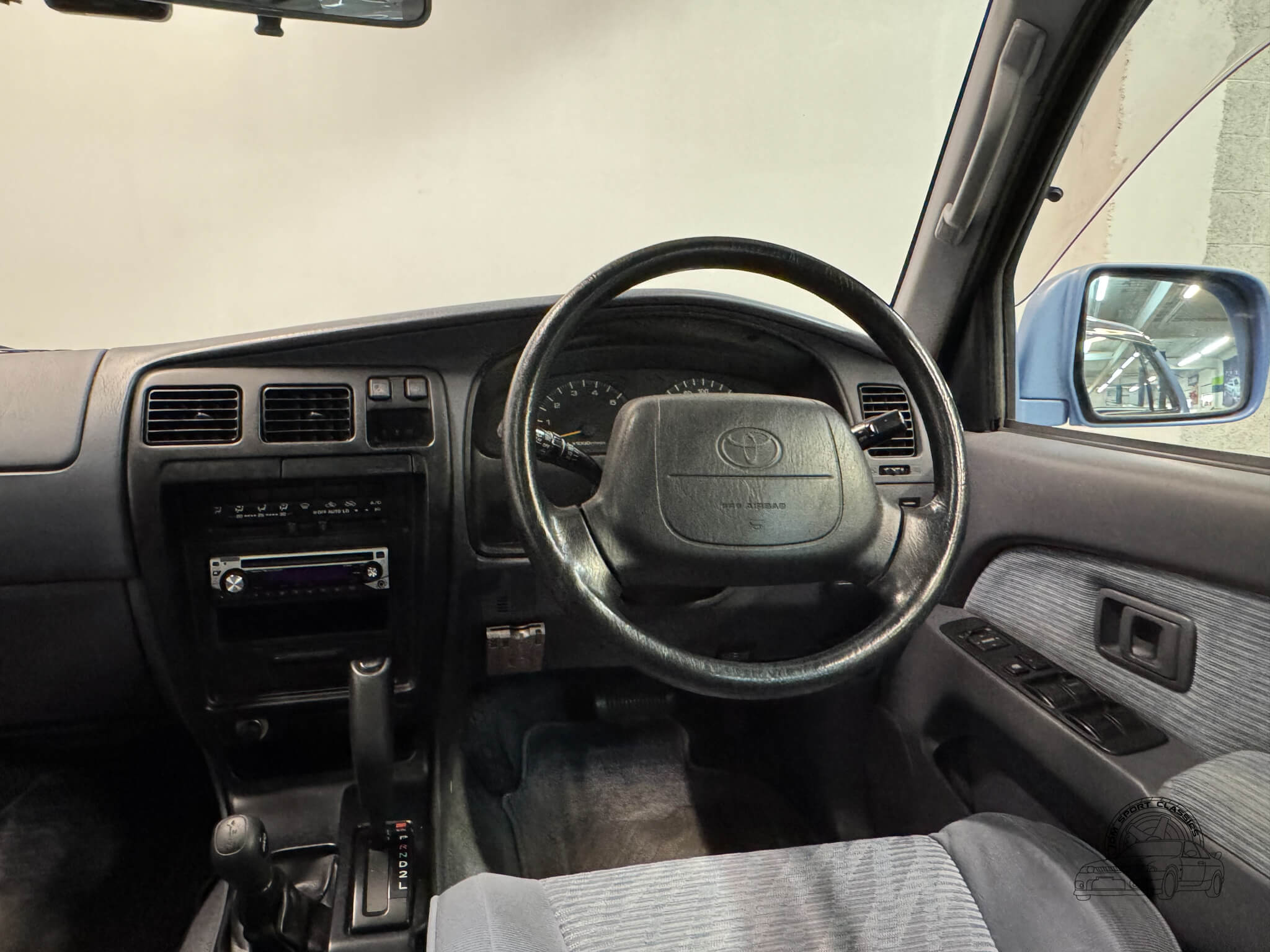 A staple of the nineties 4×4 era, this Toyota Hilux Surf SSR-X Active Package balances a reputation for long term reliability with a distinct wide body aesthetic. Finished in factory Light Blue Mica Metallic over Silver Metallic, this one owner example maintains its original factory look with 116,425 verified miles. Unlike more complex modern SUVs, this Hilux Surf relies on a robust chassis and a no nonsense layout designed for consistent daily use and off-road capability.