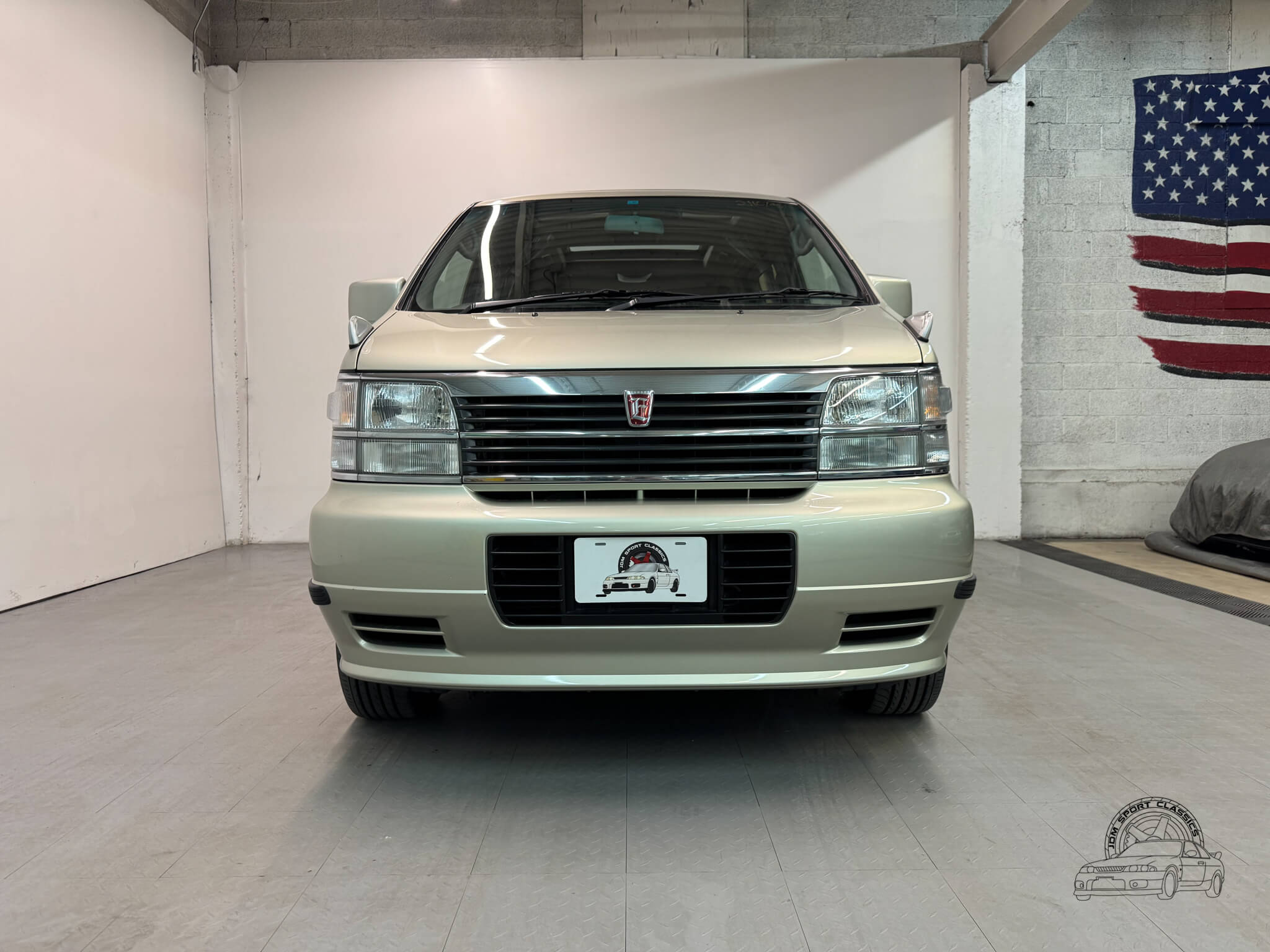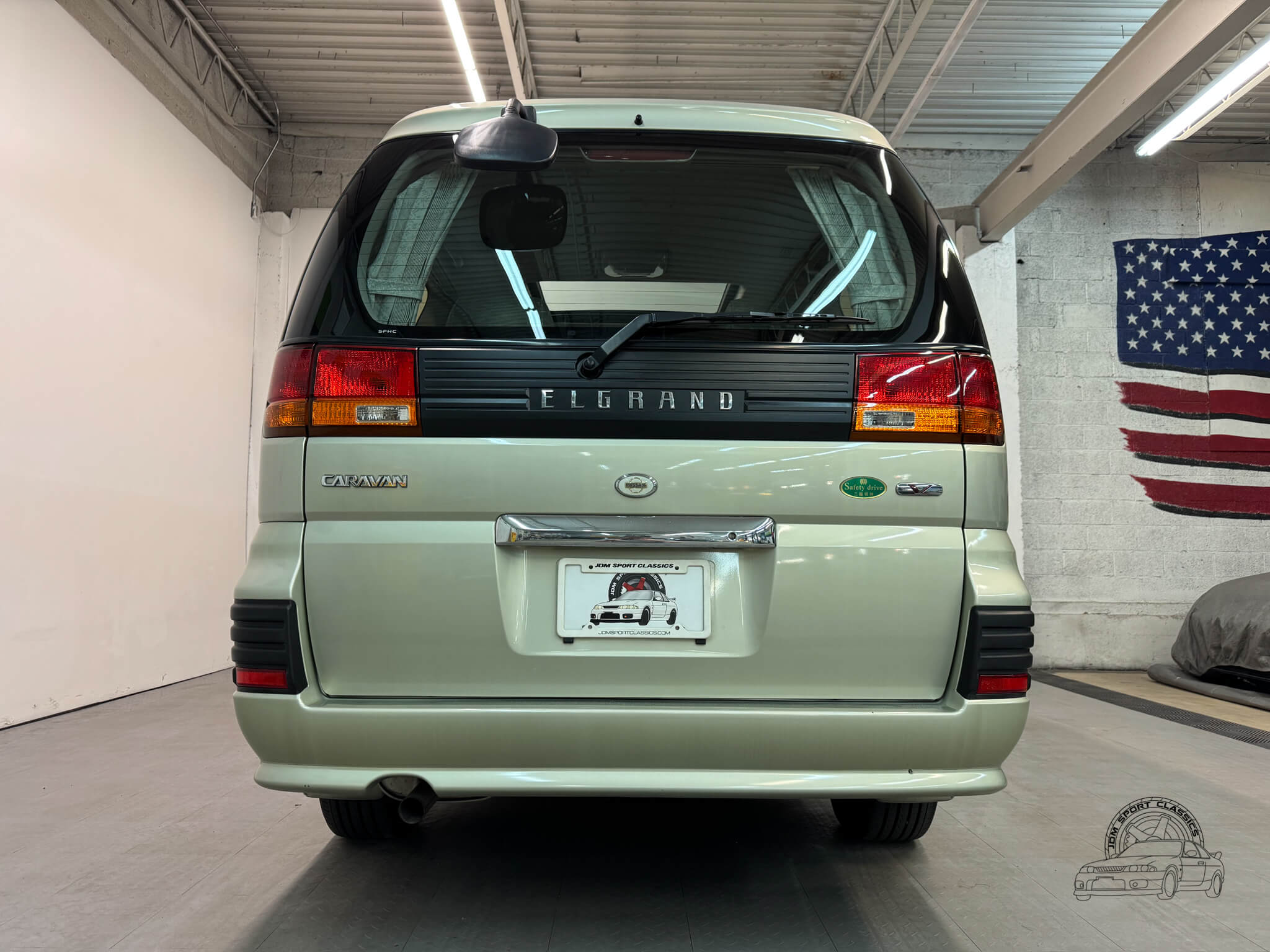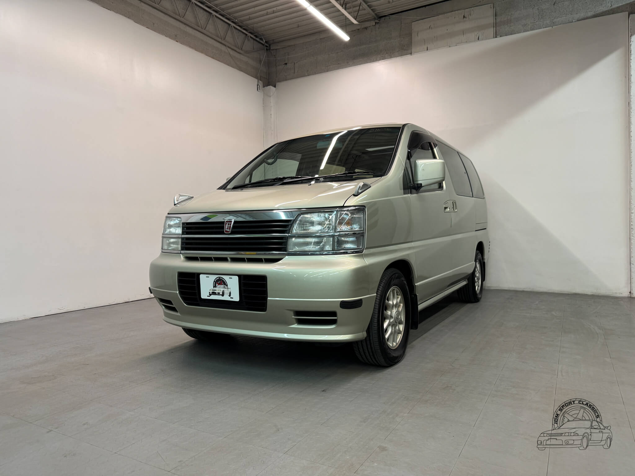 The 1998 Nissan Caravan Elgrand V represents one of the most complete expressions of Nissan’s full-size van design from the late 1990s. Finished in Silver Sage Pearl (color code KR3), this Elgrand has covered just 38,000 verified miles and remains in remarkable overall condition. As one of the more premium configurations in the lineup, the Caravan Elgrand V was developed to bridge comfort, capability, and luxury, making it both a family cruiser and an adventure ready tourer.