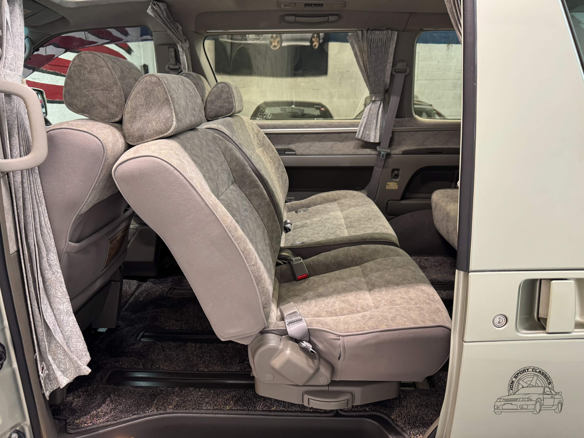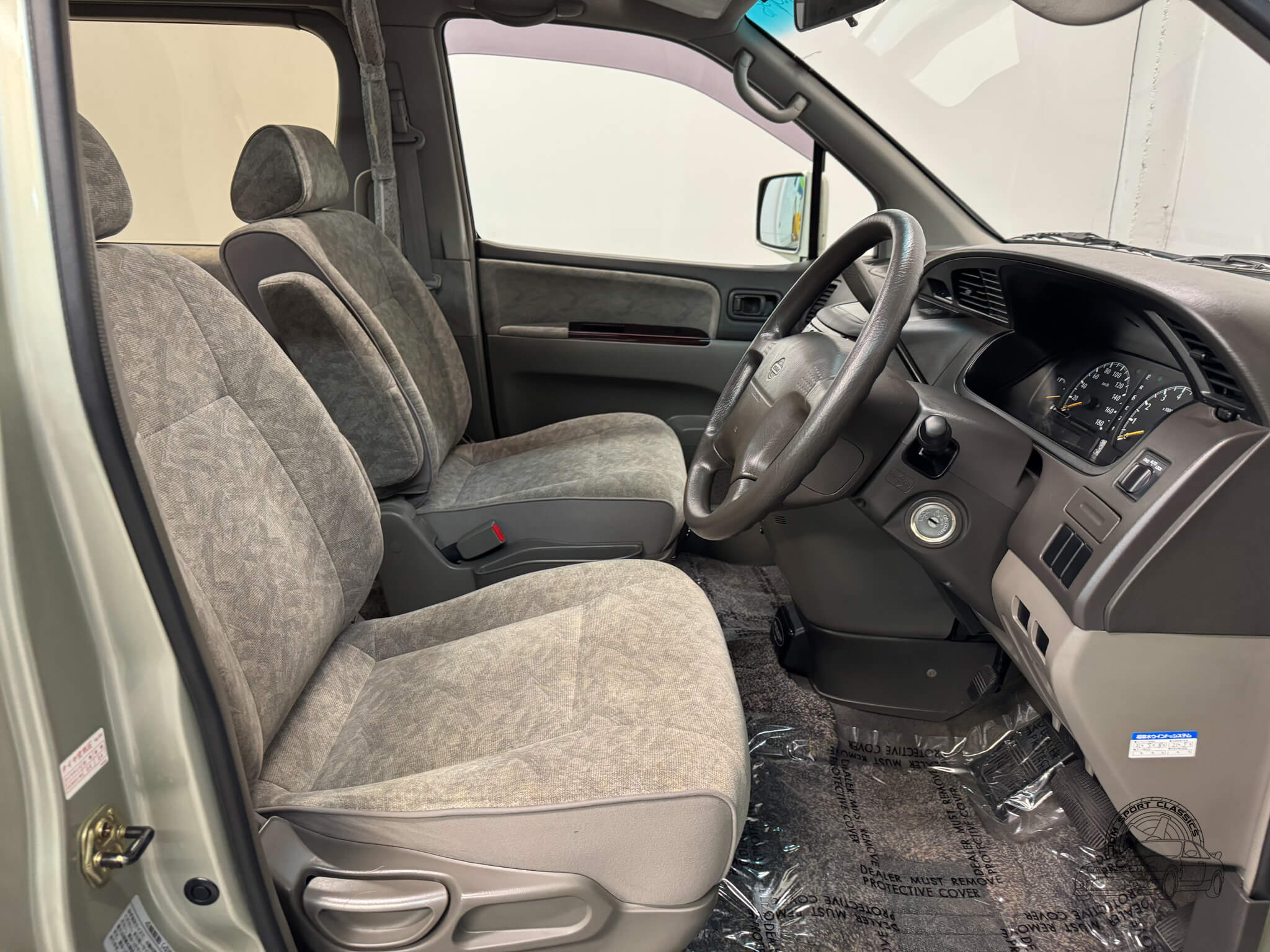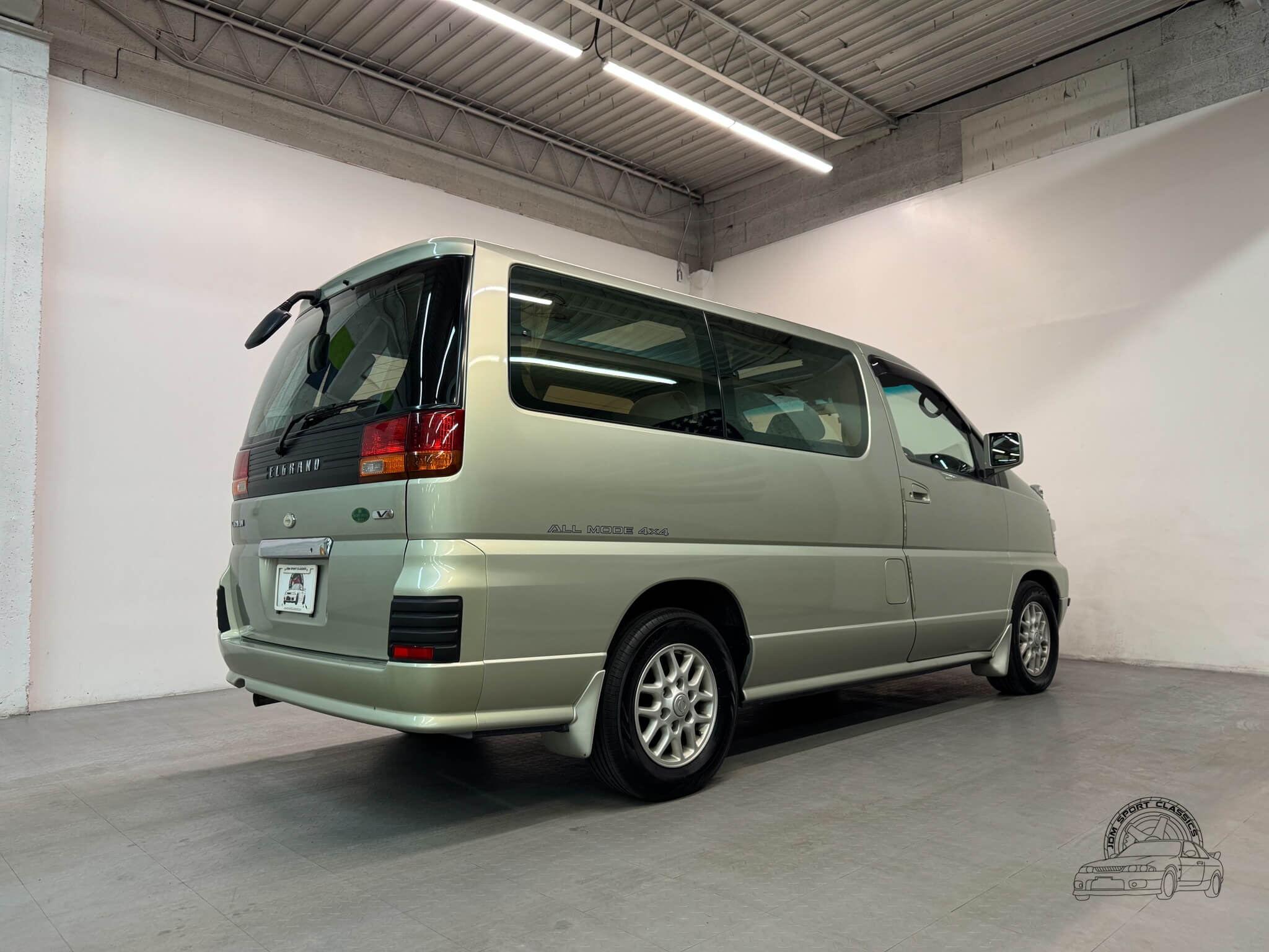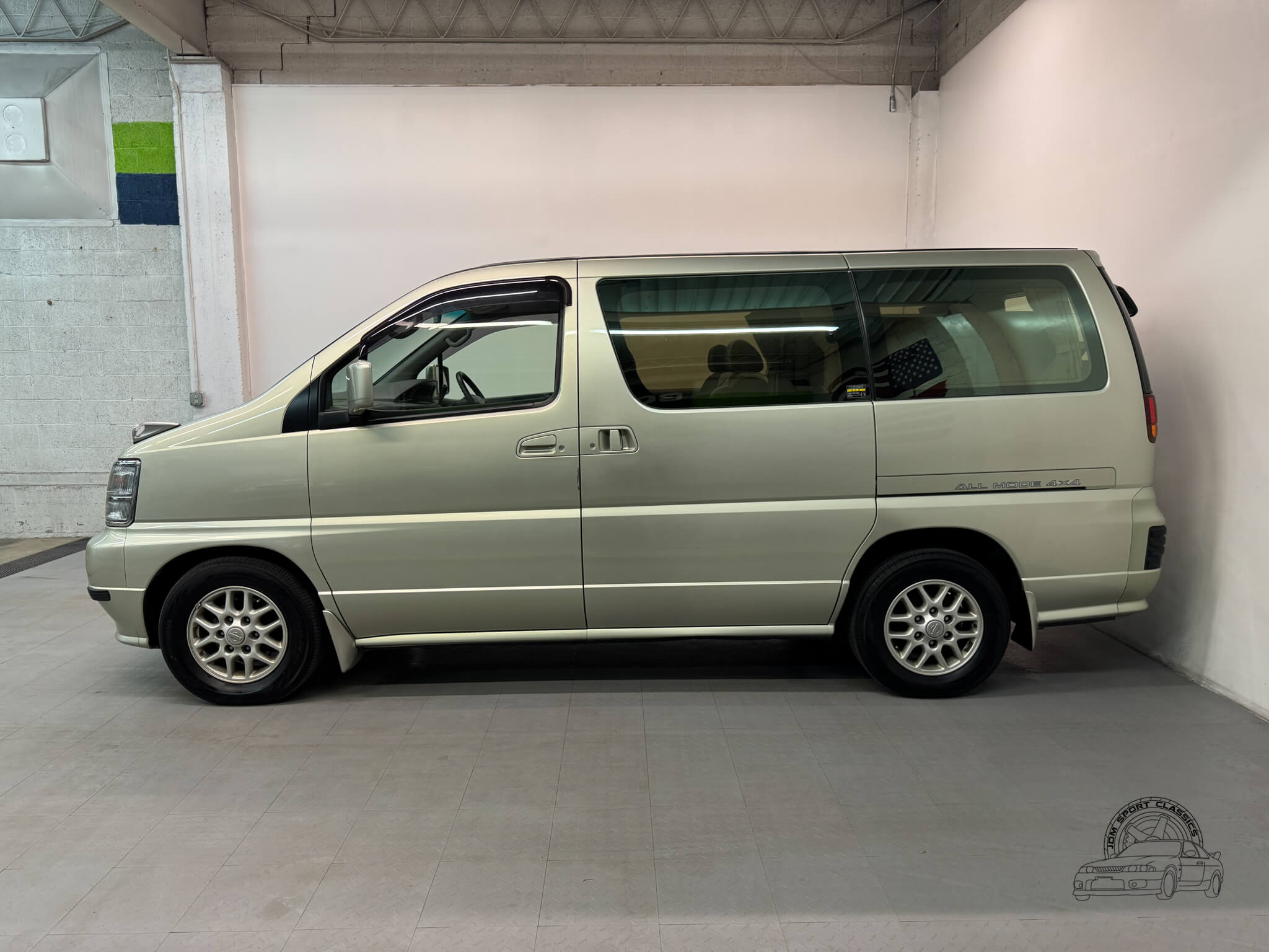 The 1998 Nissan Caravan Elgrand V represents one of the most complete expressions of Nissan’s full-size van design from the late 1990s. Finished in Silver Sage Pearl (color code KR3), this Elgrand has covered just 38,000 verified miles and remains in remarkable overall condition. As one of the more premium configurations in the lineup, the Caravan Elgrand V was developed to bridge comfort, capability, and luxury, making it both a family cruiser and an adventure ready tourer.