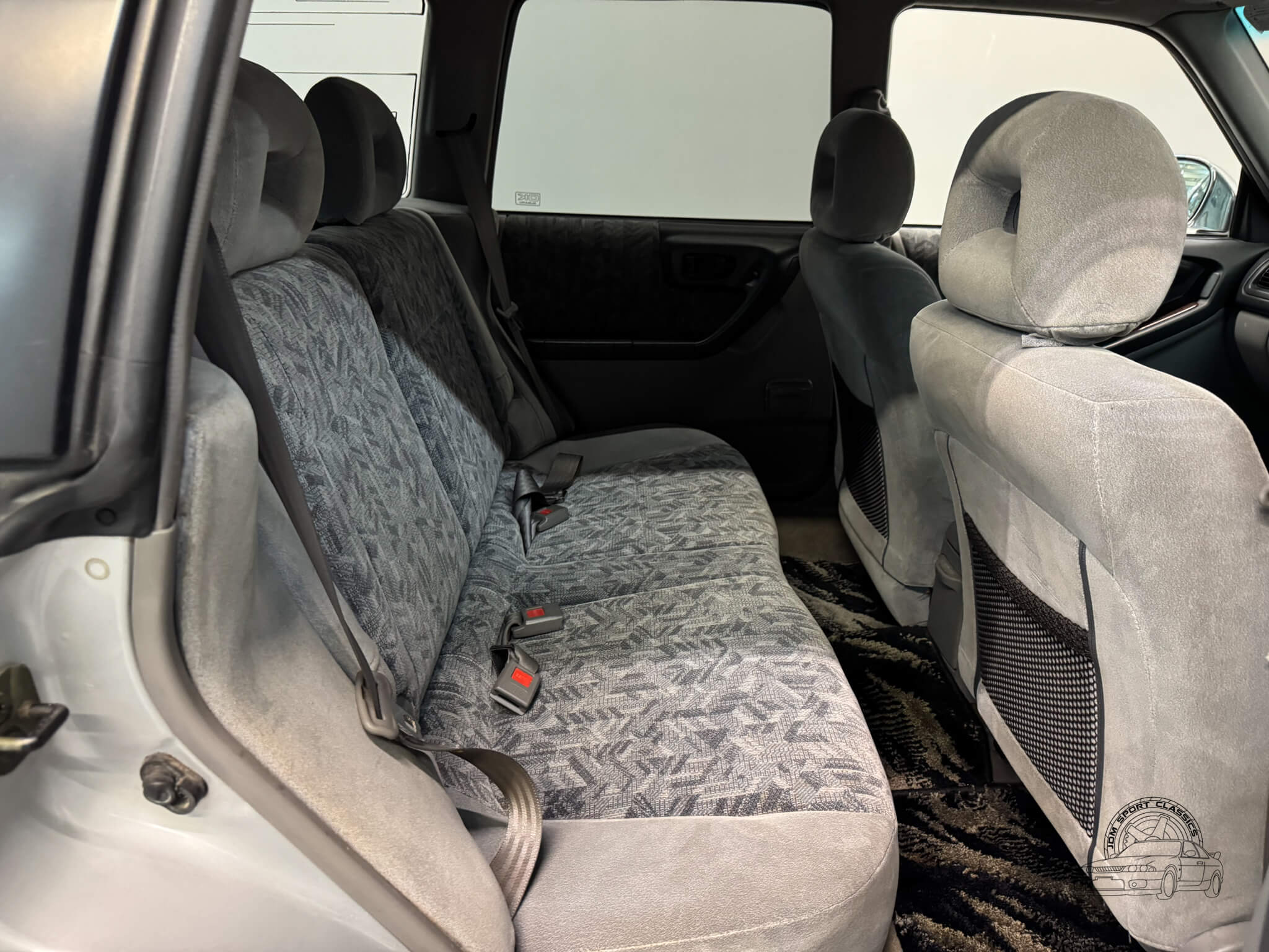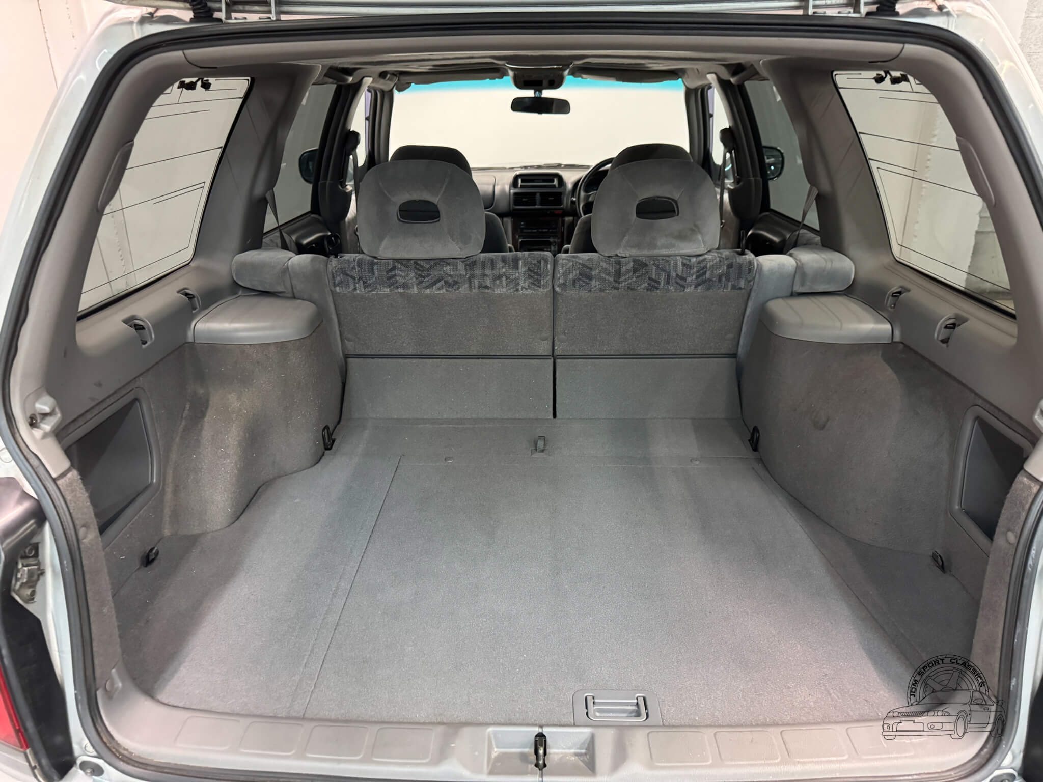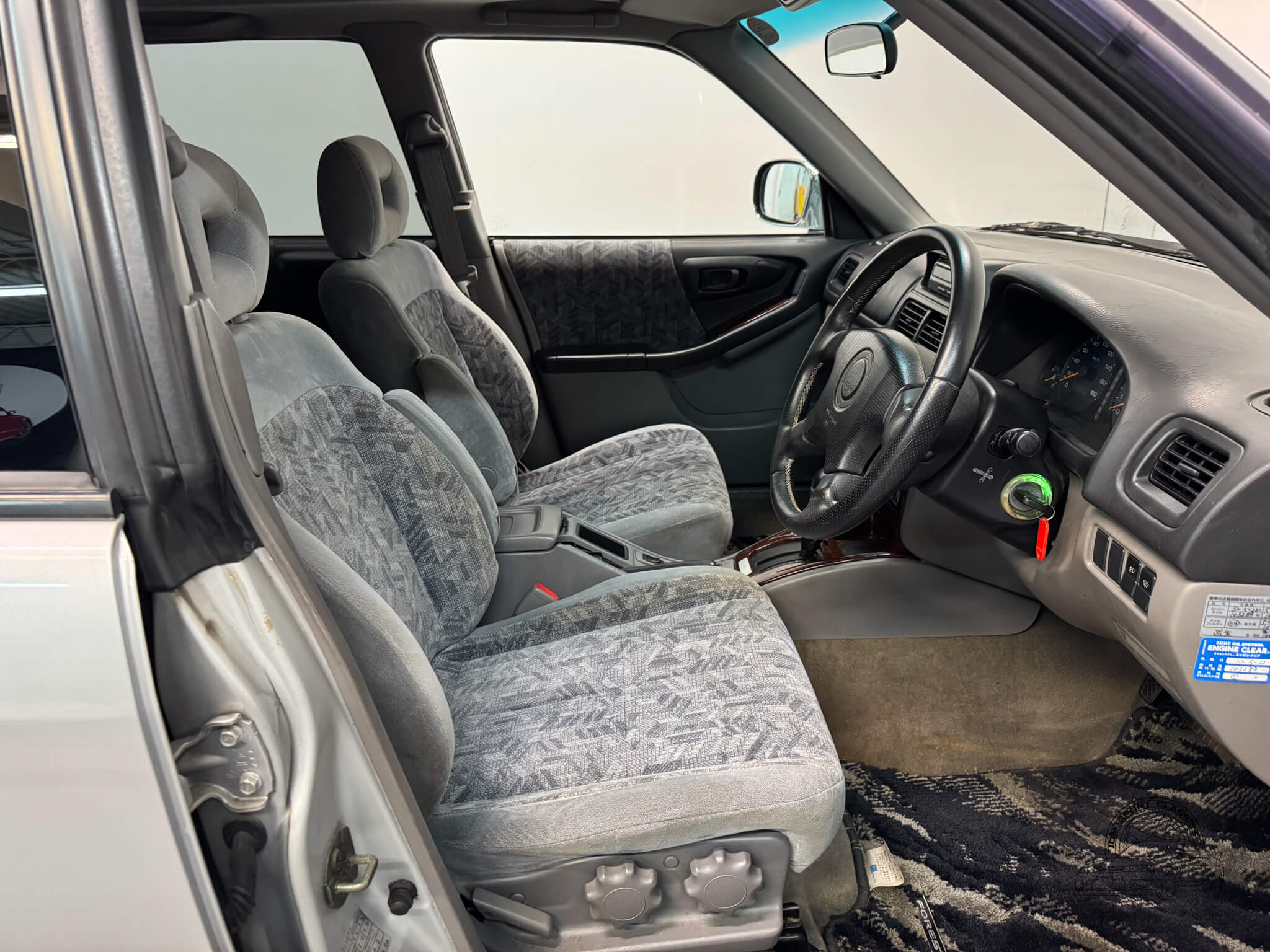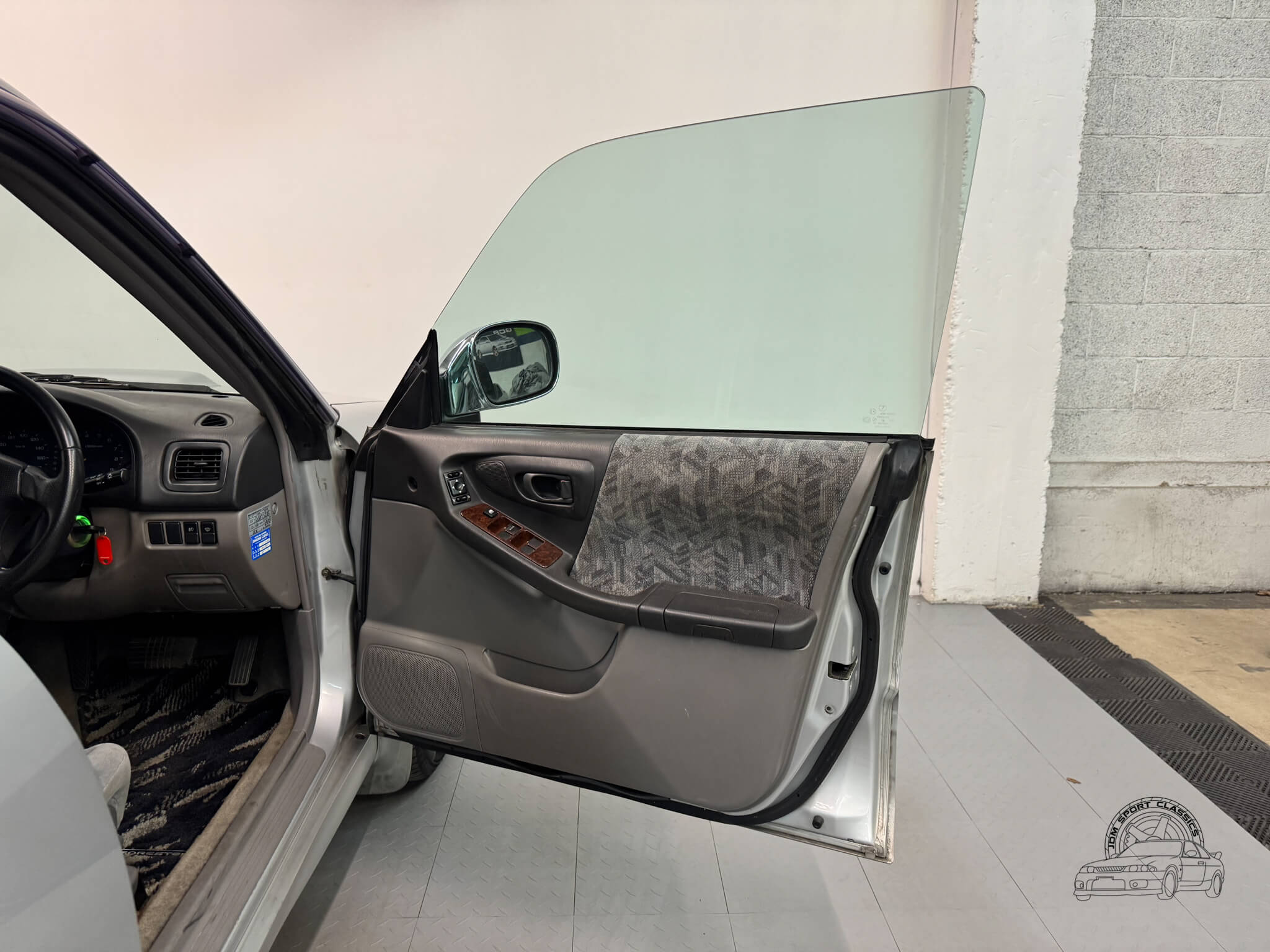 Unlike other sports cars of this era, the Subaru Forester’s interior is built with quality materials that have stood the test of time. Multi-pattern cloth seats are supportive and comfortable, complemented by subtle wood grain accents and original OEM Forester floor mats that preserve the car’s authenticity. Features like power folding and adjusting mirrors, power windows, a power sunroof, and digital climate control with hot heat and cold A/C make every drive easy and enjoyable. The OEM Kenwood head unit and MOMO steering wheel add character, and the rear cargo area provides ample space for gear, luggage, or everyday essentials.