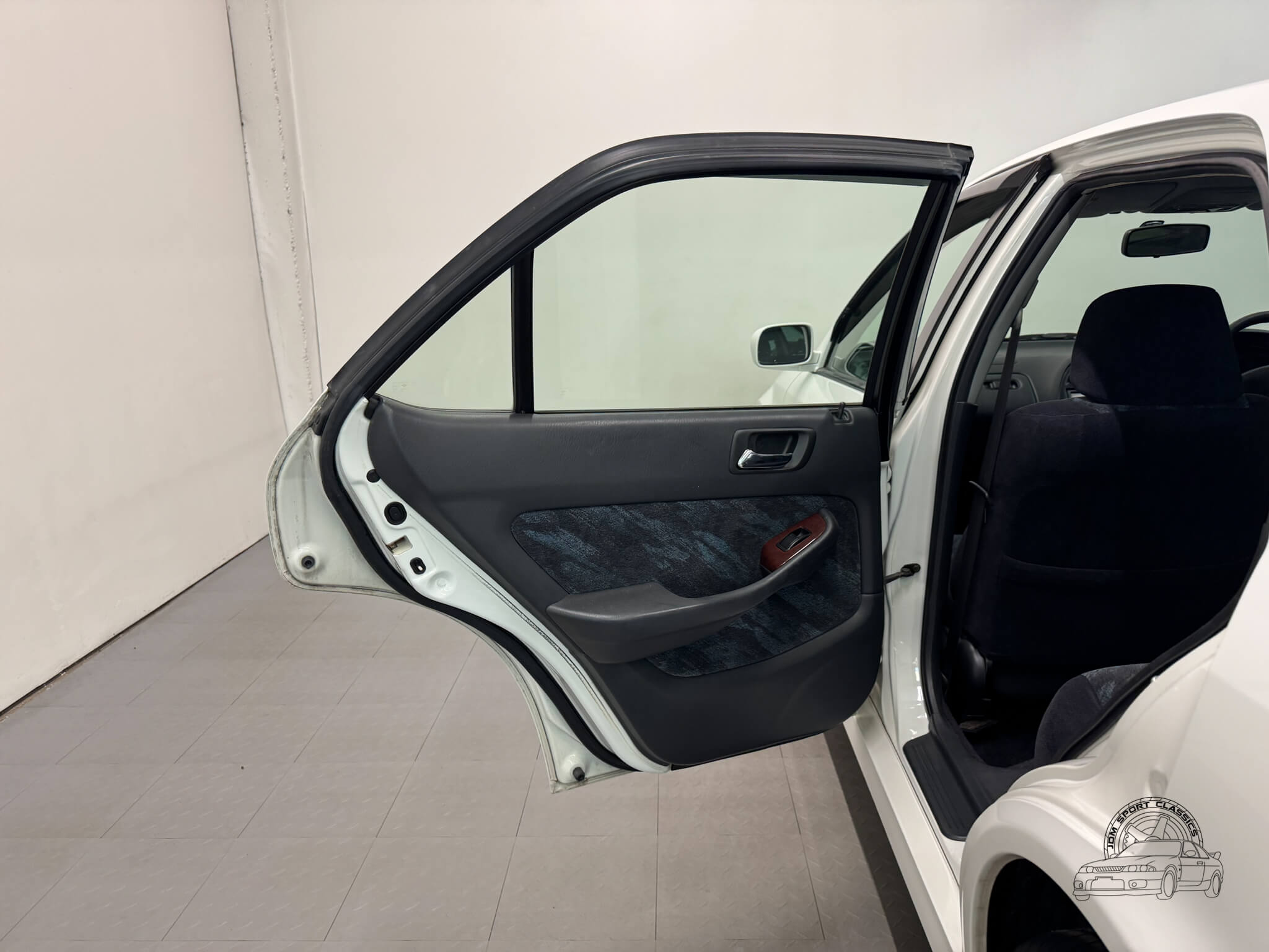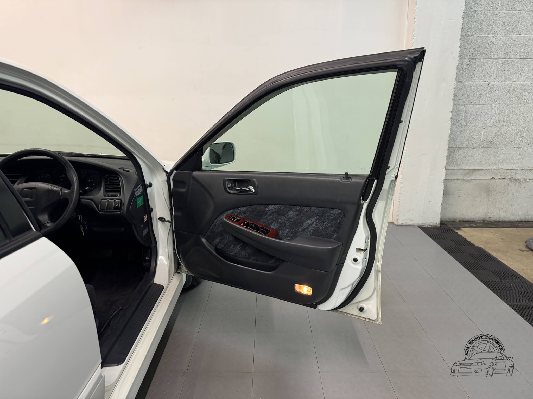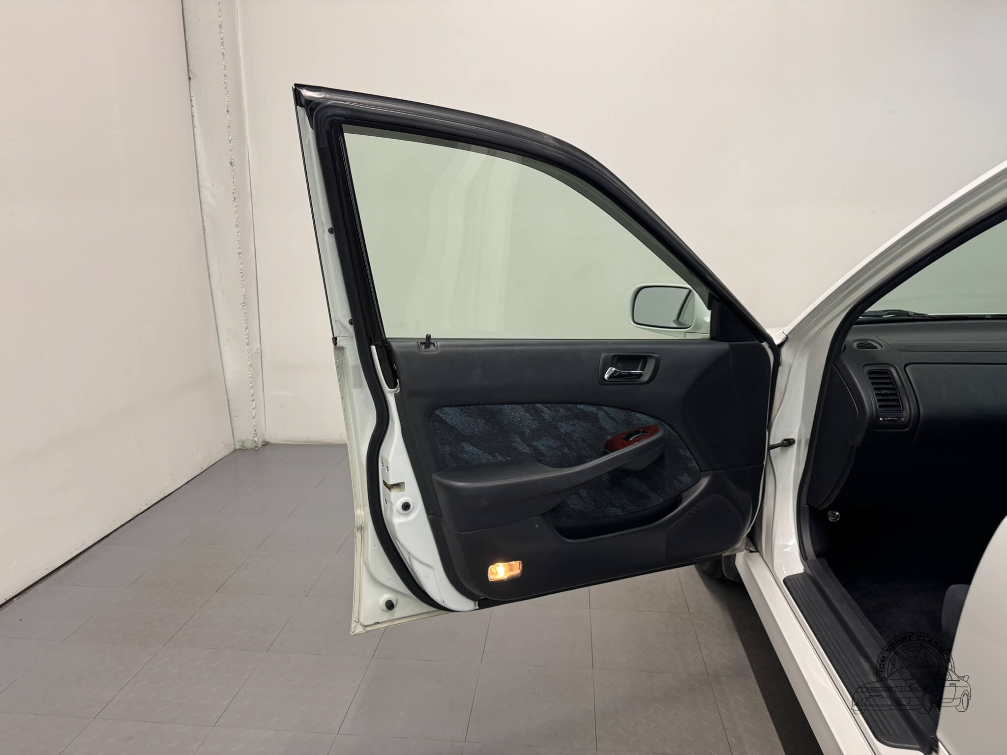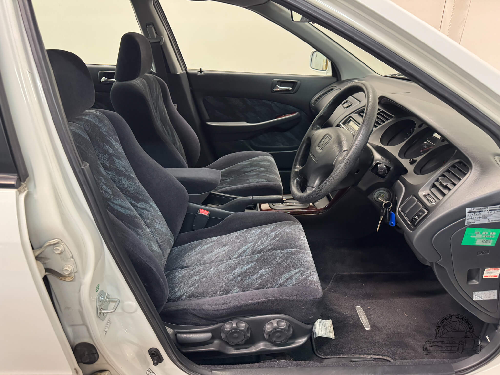 The exterior of this Torneo 2.0VTS features a sharper, more angular look than the standard Accord of the period. Finished in Taffeta White, this example is equipped with a period correct factory Modulo aero kit, including a front lip, side skirts, and a rear lip with matching rear spats for a more sporty stance. The car sits on 5-spoke Modulo wheels and comes fitted with fog lights and a full set of rain visors for added utility. It is a sharp, balanced sedan that offers a unique, aggressive look on the road while maintaining the practical dimensions of a reliable four door.