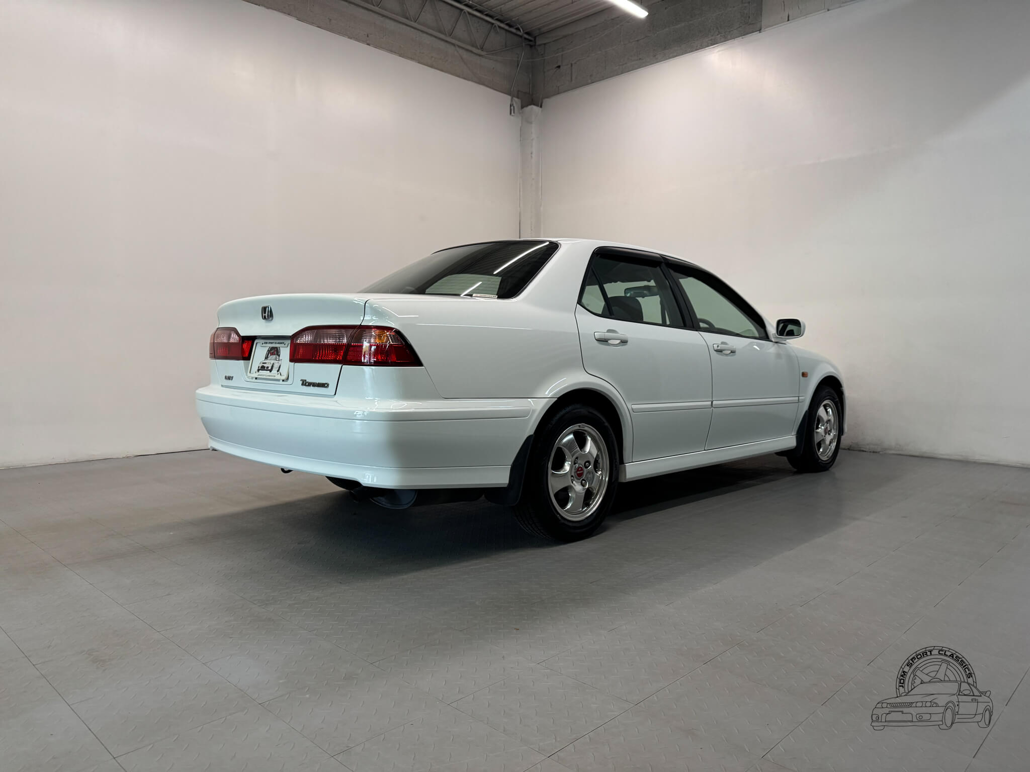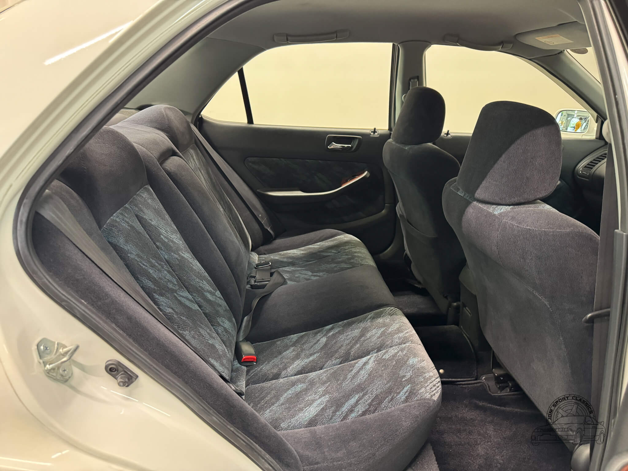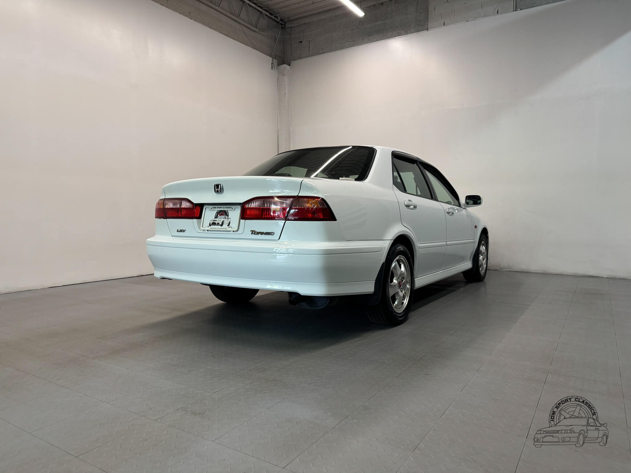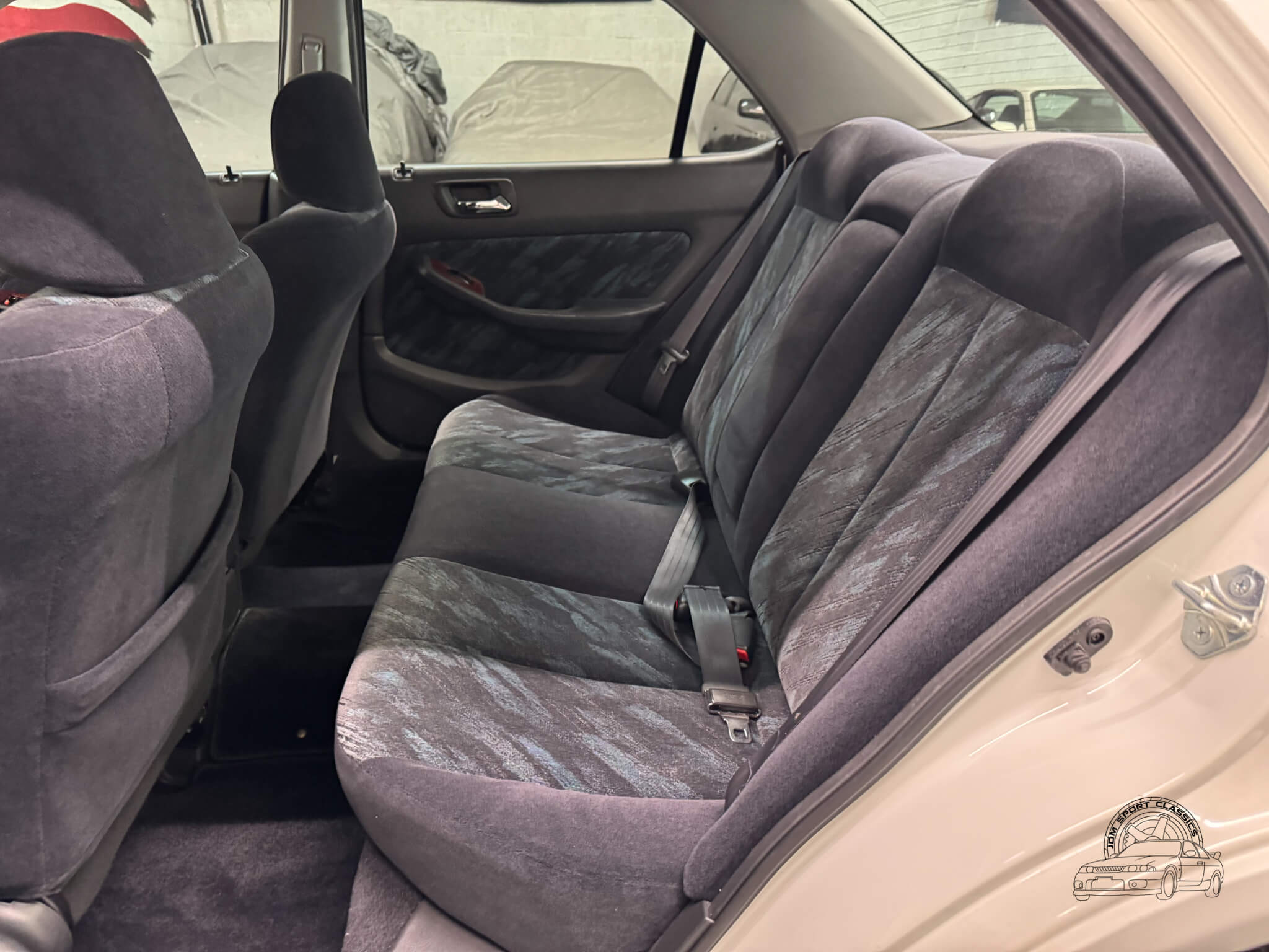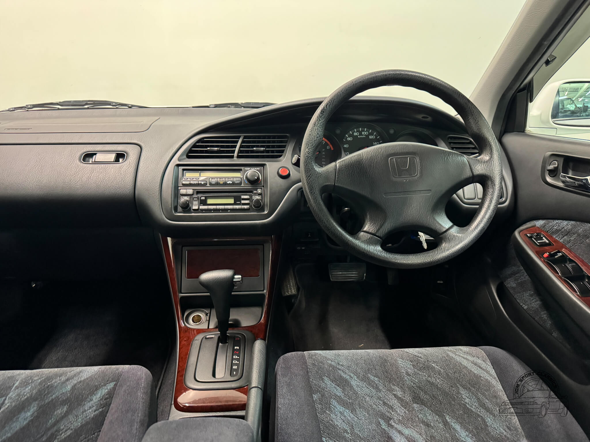 The exterior of this Torneo 2.0VTS features a sharper, more angular look than the standard Accord of the period. Finished in Taffeta White, this example is equipped with a period correct factory Modulo aero kit, including a front lip, side skirts, and a rear lip with matching rear spats for a more sporty stance. The car sits on 5-spoke Modulo wheels and comes fitted with fog lights and a full set of rain visors for added utility. It is a sharp, balanced sedan that offers a unique, aggressive look on the road while maintaining the practical dimensions of a reliable four door.