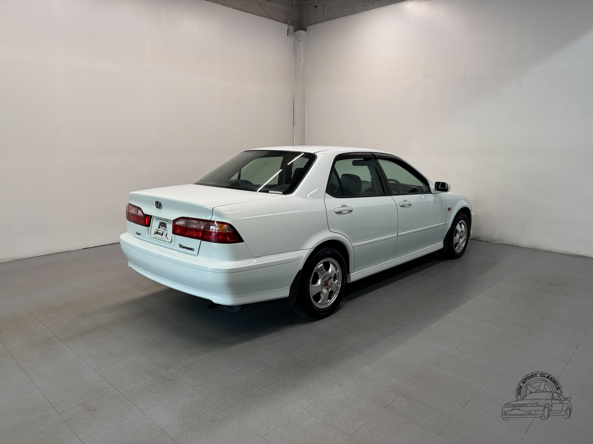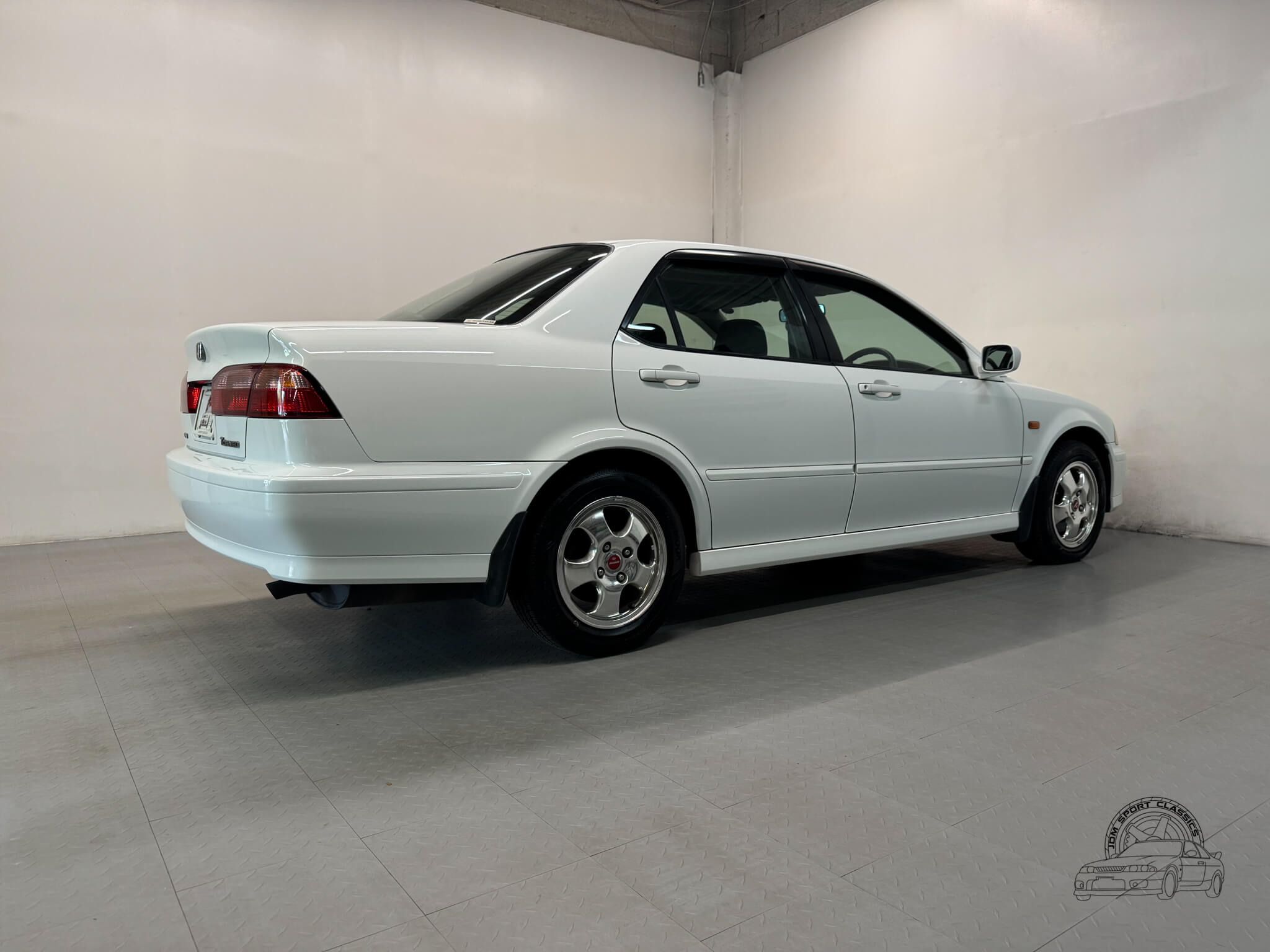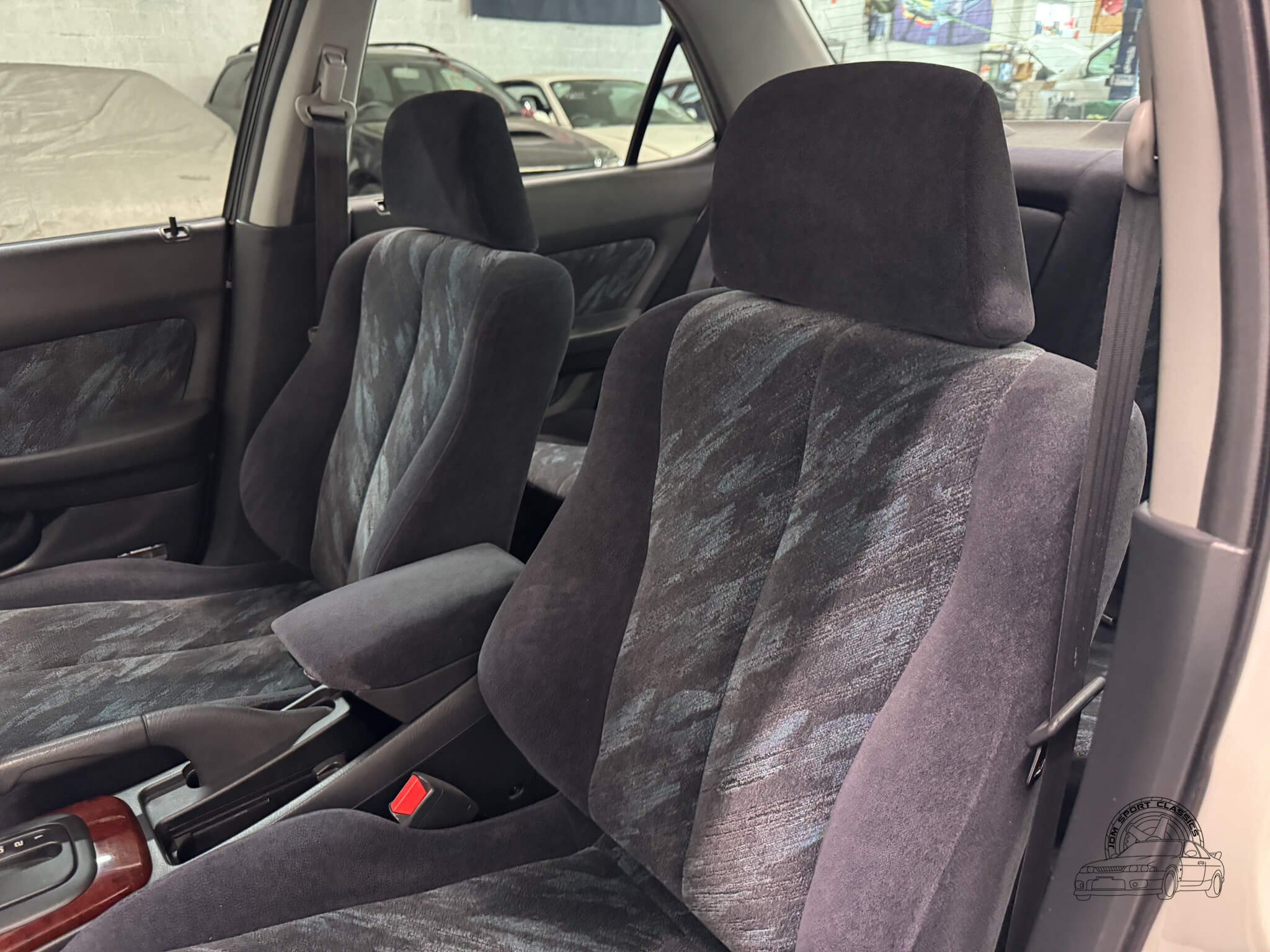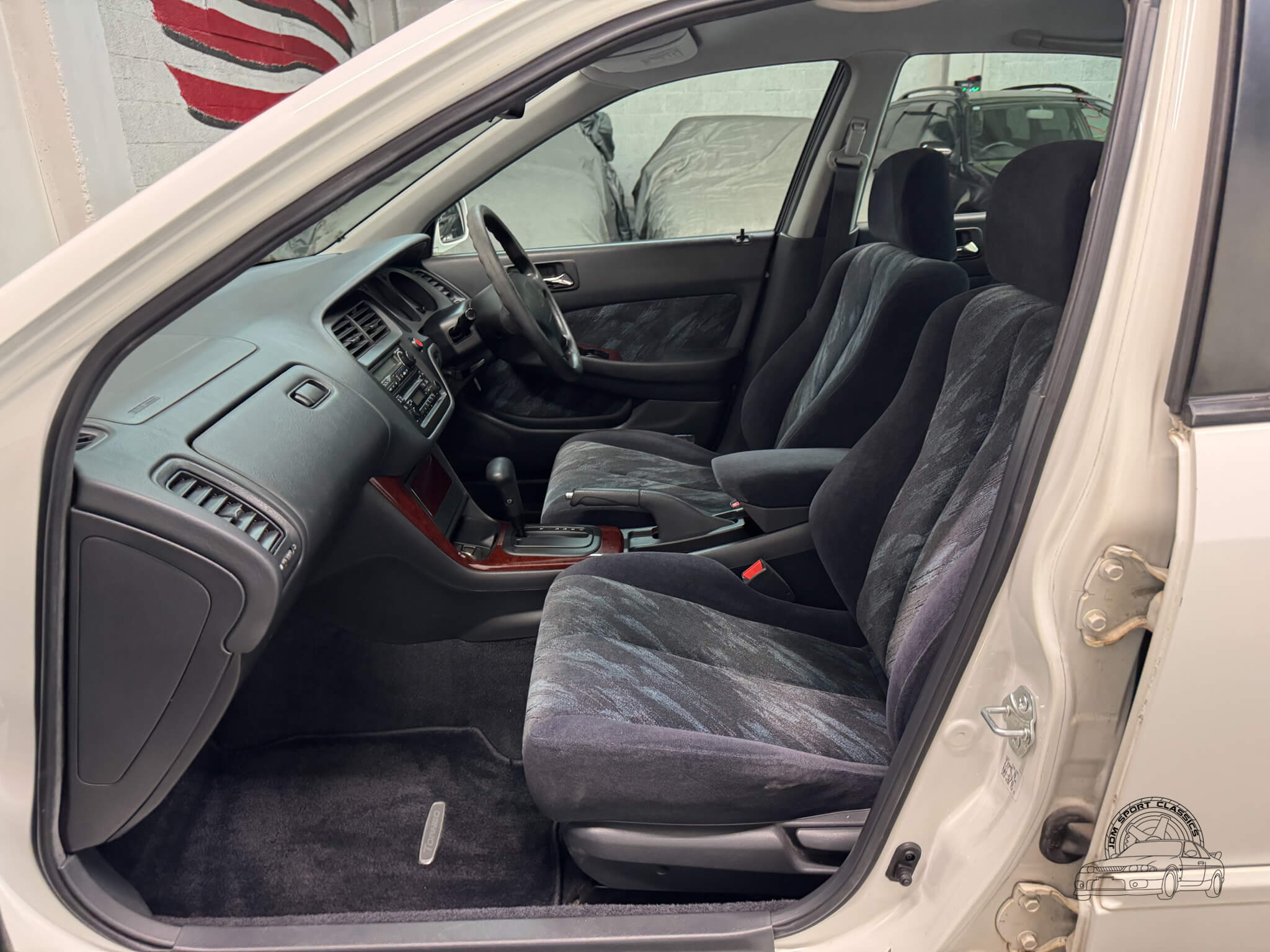 The exterior of this Torneo 2.0VTS features a sharper, more angular look than the standard Accord of the period. Finished in Taffeta White, this example is equipped with a period correct factory Modulo aero kit, including a front lip, side skirts, and a rear lip with matching rear spats for a more sporty stance. The car sits on 5-spoke Modulo wheels and comes fitted with fog lights and a full set of rain visors for added utility. It is a sharp, balanced sedan that offers a unique, aggressive look on the road while maintaining the practical dimensions of a reliable four door.