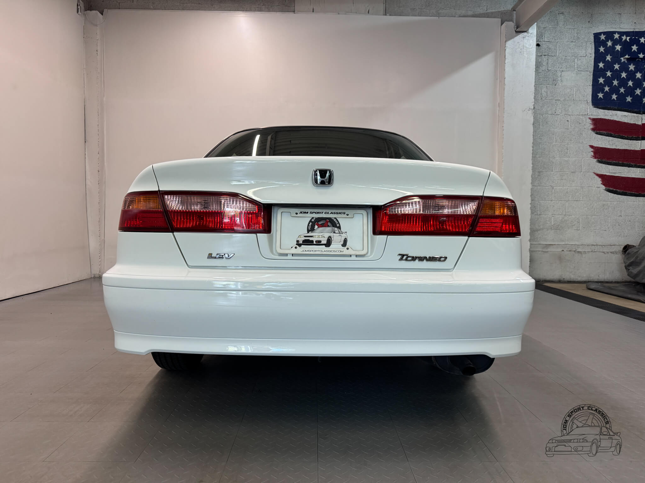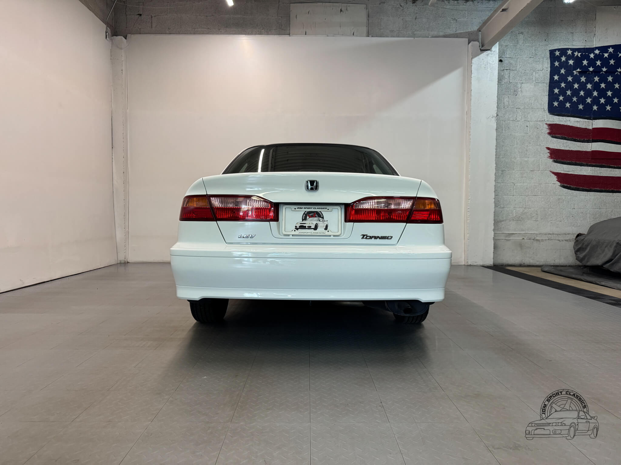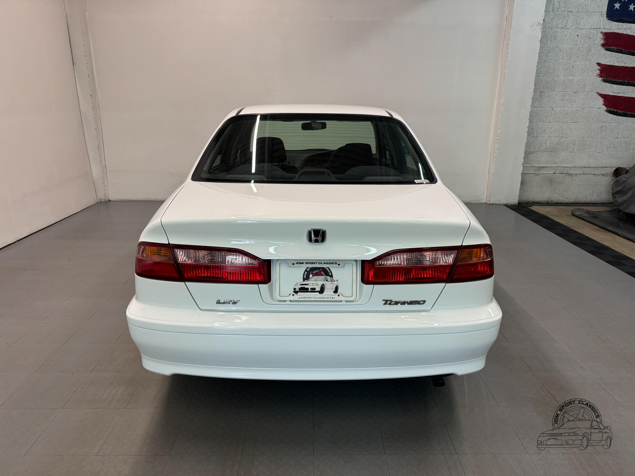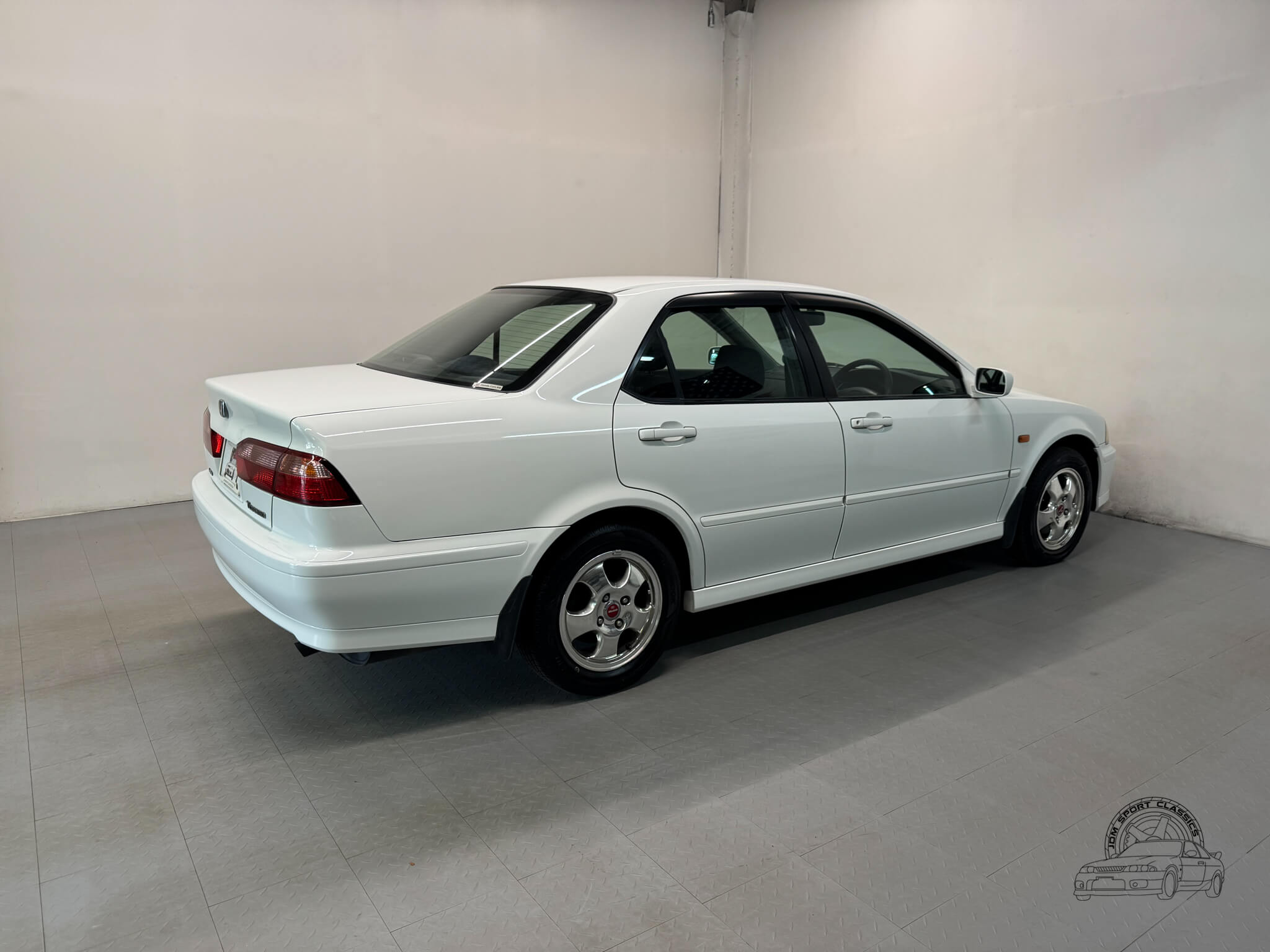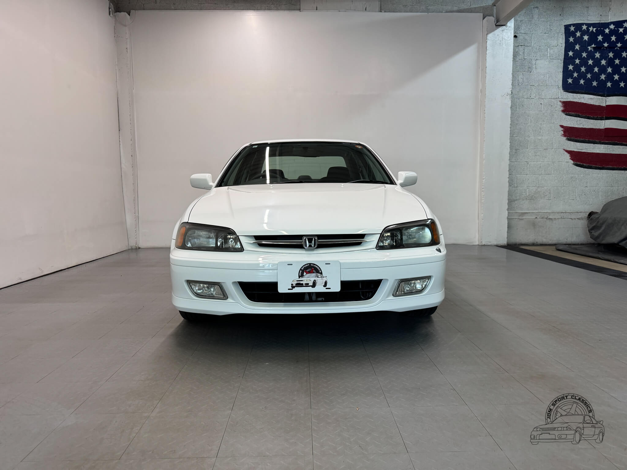 The exterior of this Torneo 2.0VTS features a sharper, more angular look than the standard Accord of the period. Finished in Taffeta White, this example is equipped with a period correct factory Modulo aero kit, including a front lip, side skirts, and a rear lip with matching rear spats for a more sporty stance. The car sits on 5-spoke Modulo wheels and comes fitted with fog lights and a full set of rain visors for added utility. It is a sharp, balanced sedan that offers a unique, aggressive look on the road while maintaining the practical dimensions of a reliable four door.
