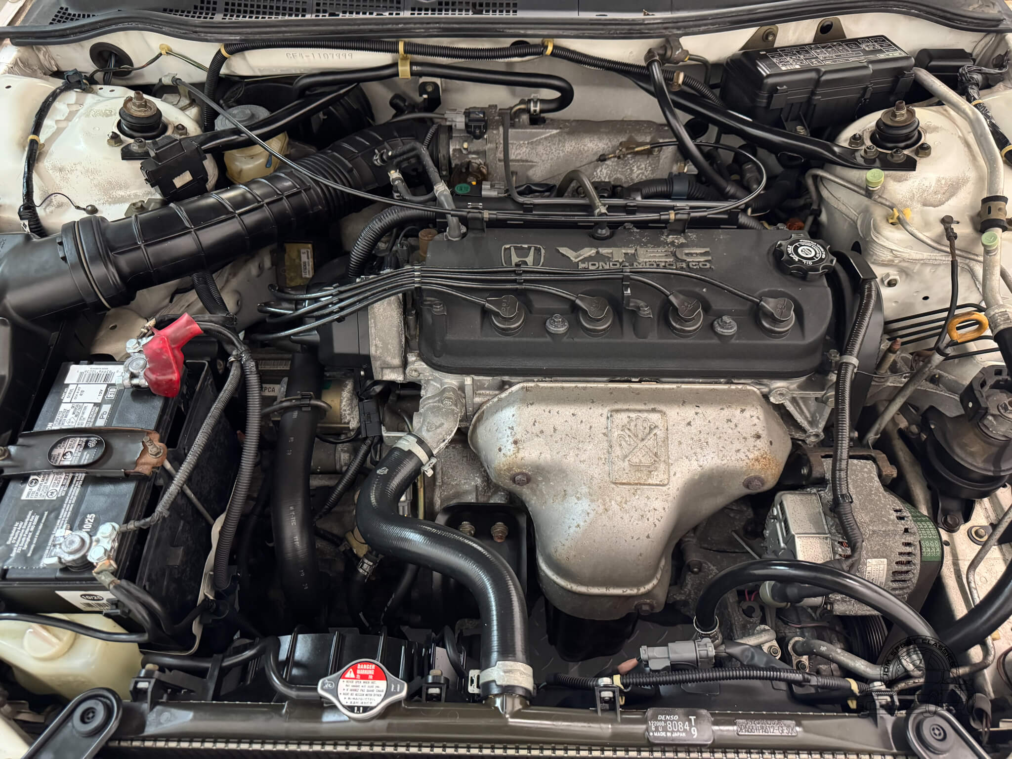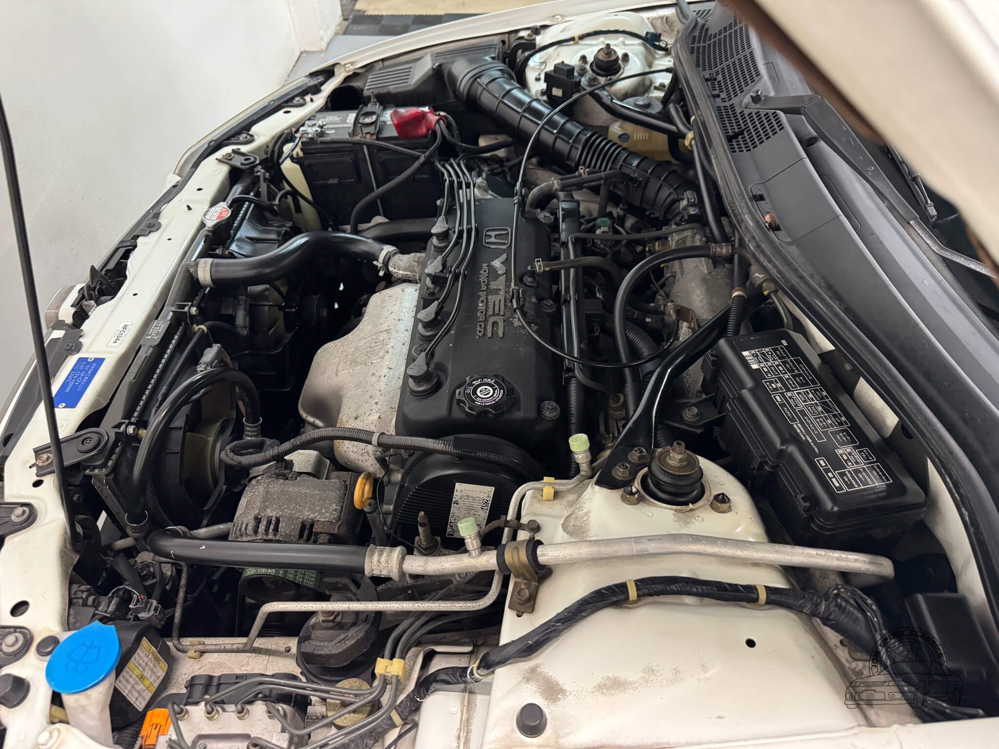 Inside, the cabin reflects the functional design of Honda’s golden era with a driver-centric layout and daily usability that outclasses most cars from the period. This 2.0VTS is equipped with practical features like digital climate control, power windows, power locks, and power folding and adjusting mirrors. The seats are finished in a unique patterned fabric and offer great bolster support, paired with original wood grain trim and OEM Torneo floor mats. Every detail is focused on utility, including a tilt steering wheel, front and rear cupholders, a dedicated sunglasses holder, and a rear seat pass-through for extra cargo. It is a clean, ergonomic space free of the typical dash cracking or fading, making it a liveable JDM classic ready for the road.