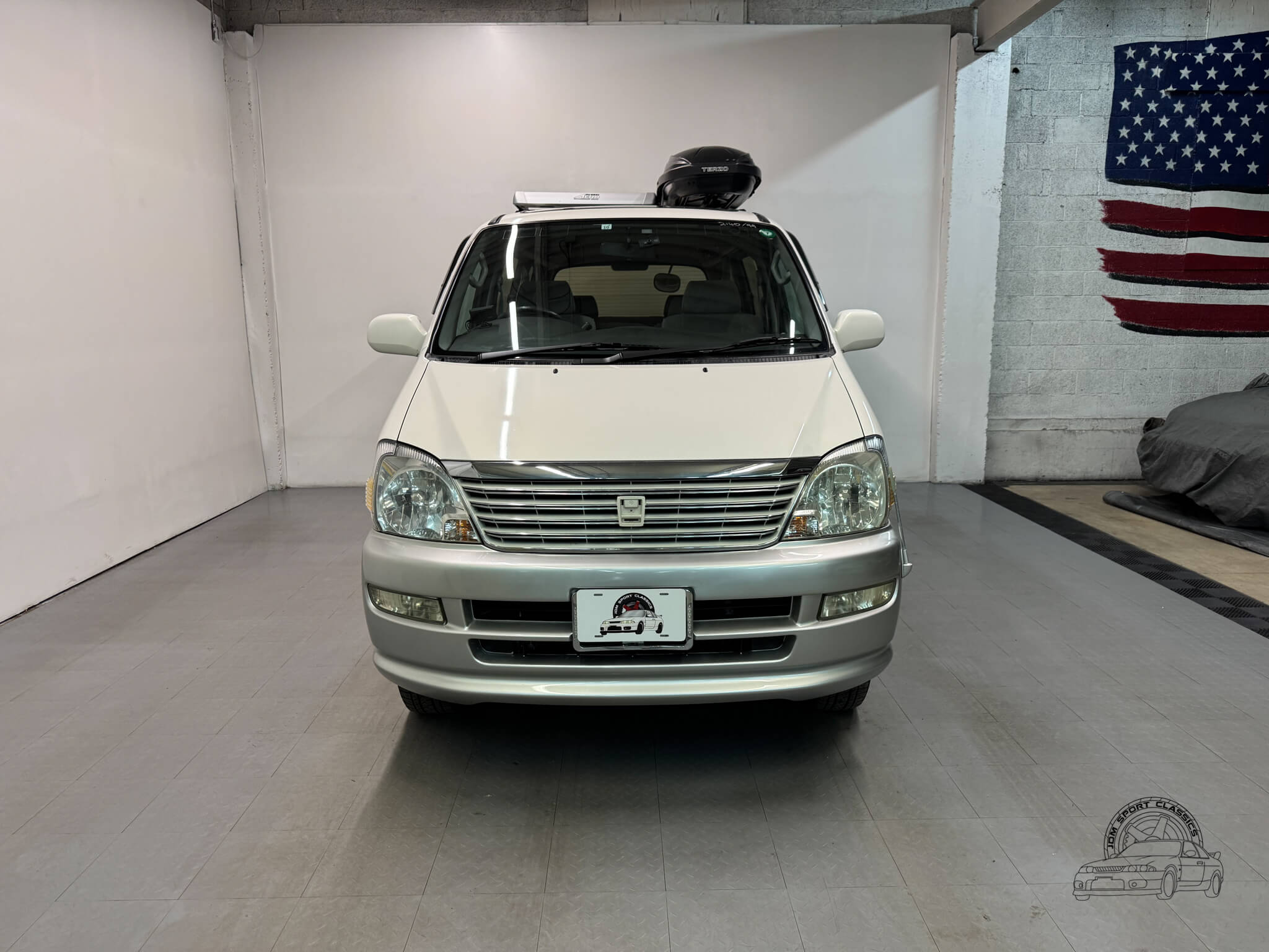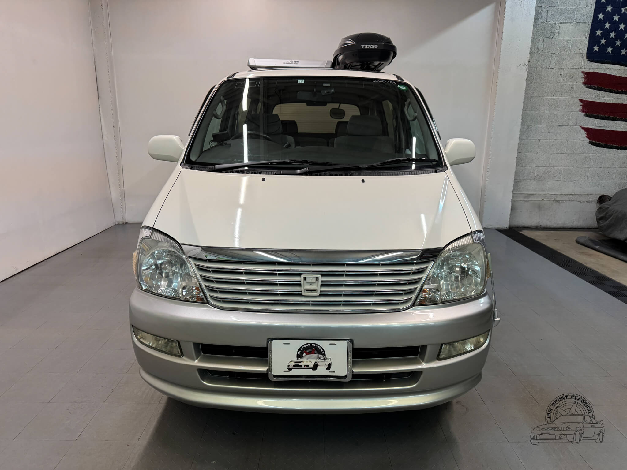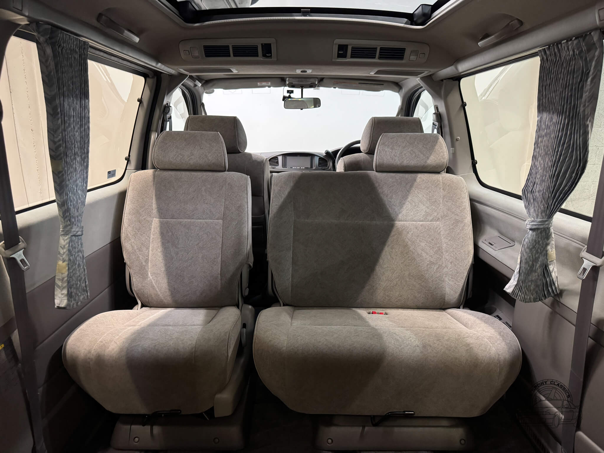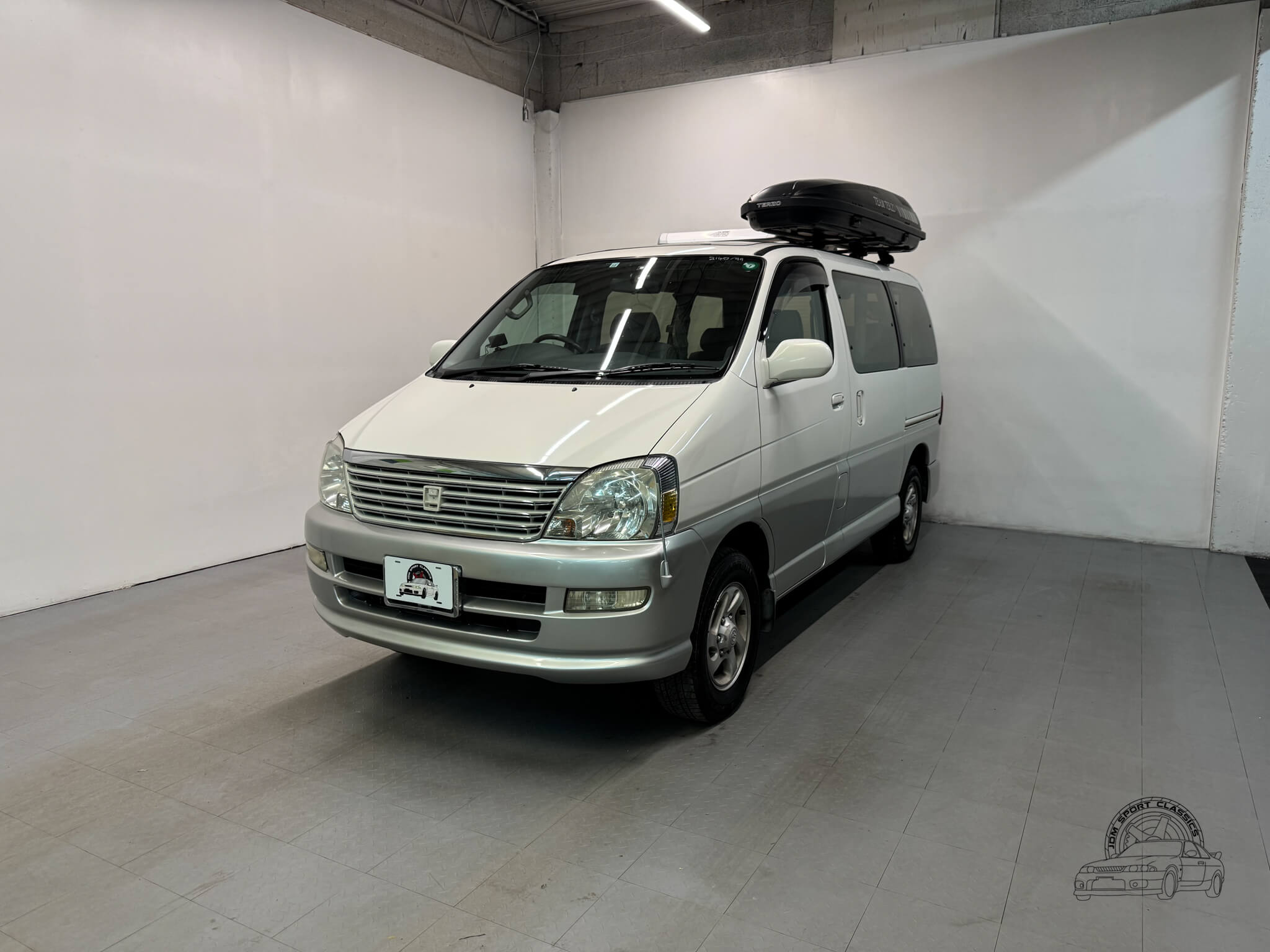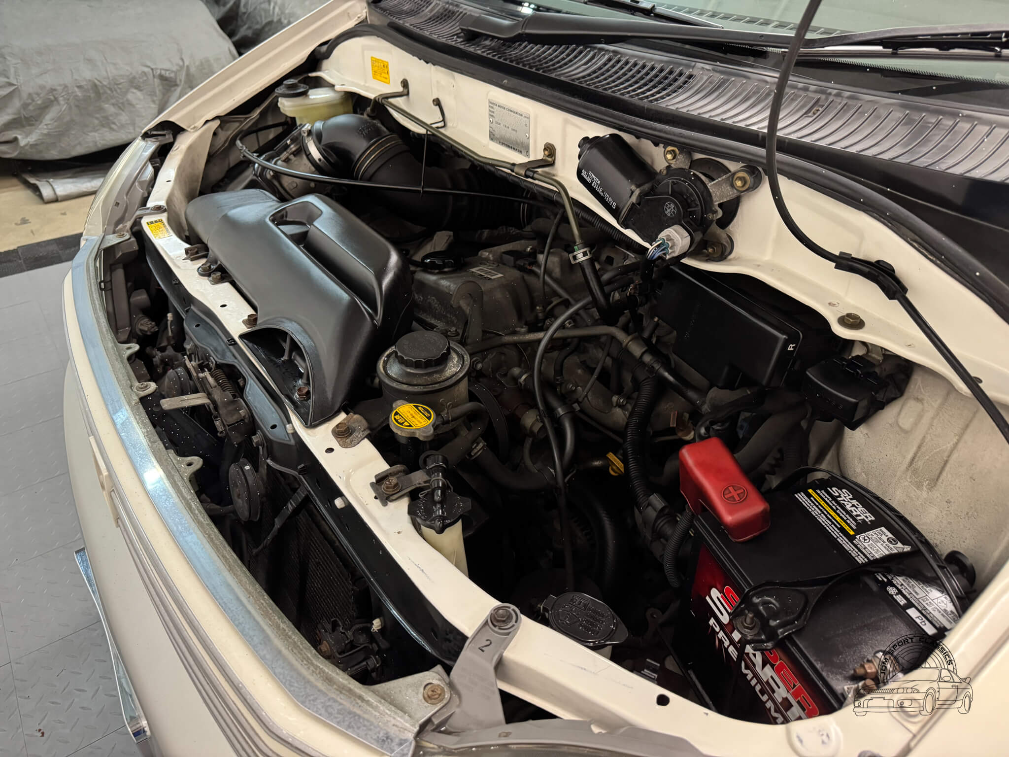This 1999 Toyota Hiace Regius V L-Package offers a refined take on the traditional Hiace, combining the reliability of the Hiace line with enhanced interior comfort and a more aerodynamic shape. Unlike the typical cab-over model, the Regius features a front-mounted engine design that creates a flat floor, allowing for much easier movement between the front seats and the rear cabin. This 8-seater 4WD example has arrived with only 51,410 verified miles and is finished in a clean two-tone White Mica Pearl and Millennium Silver Metallic. Equipped with full-time 4WD and included rooftop accessories, it is a practical choice for those looking for a functional daily driver, a capable family hauler, or a comfortable foundation for a camping build.