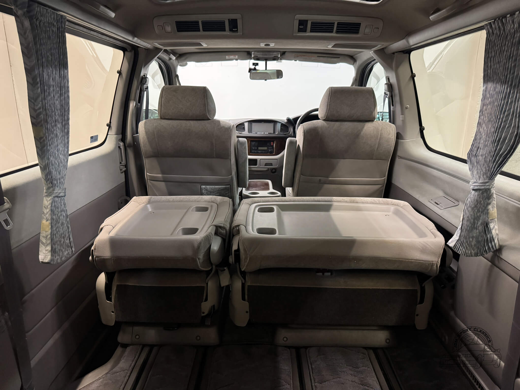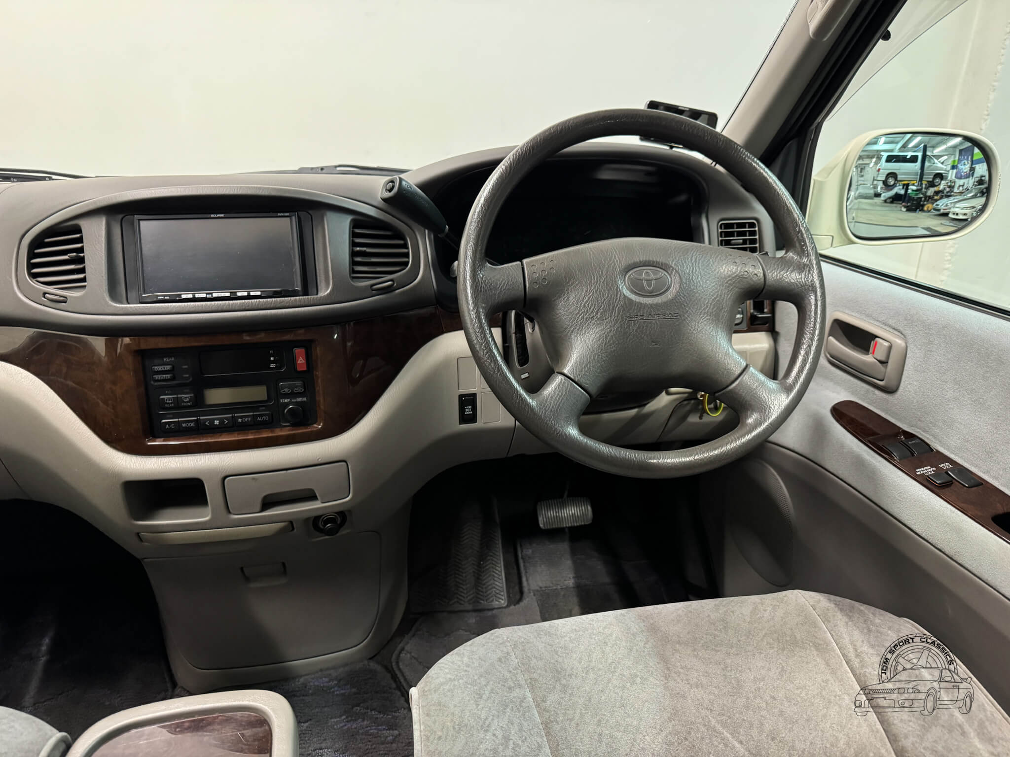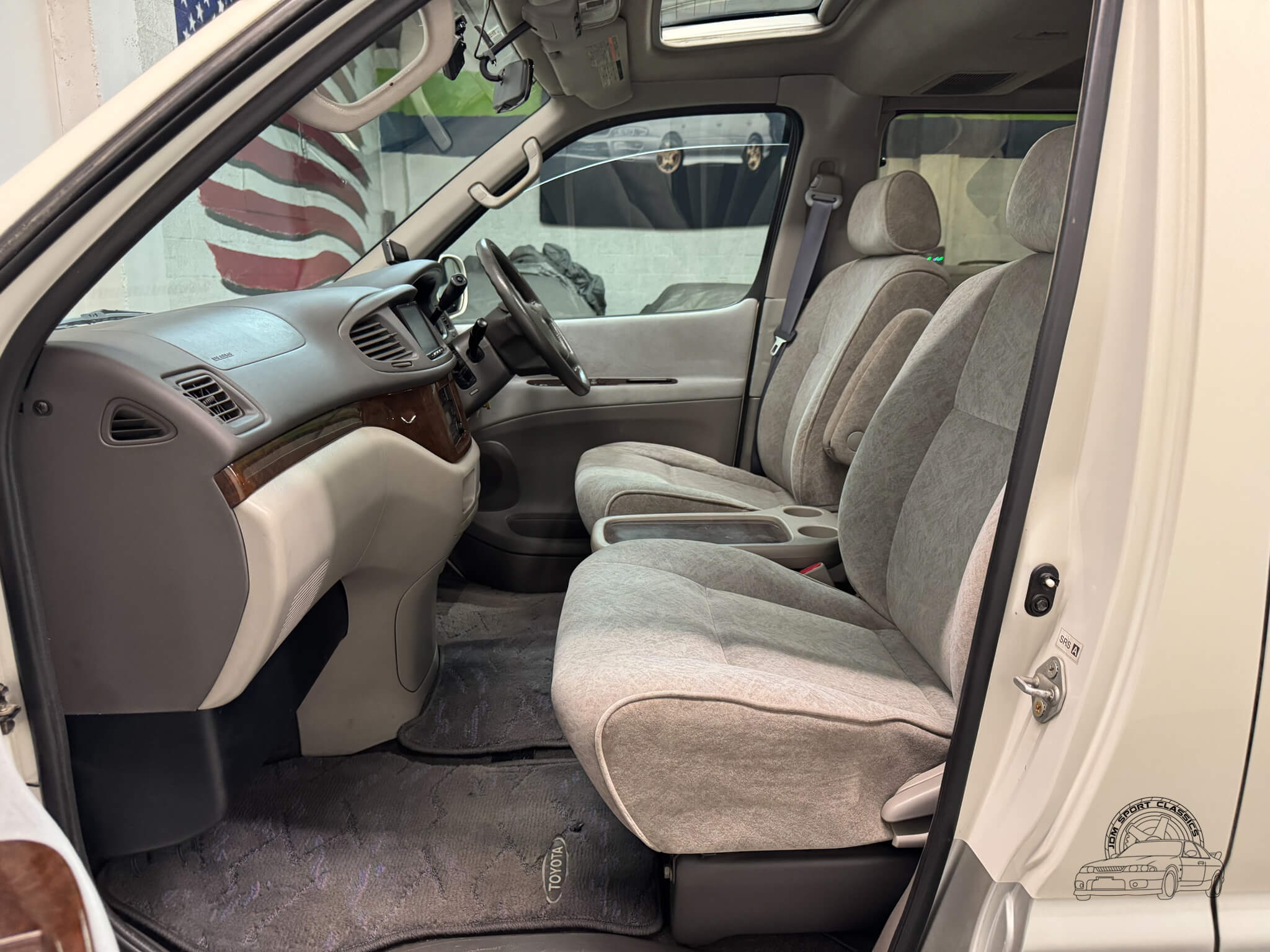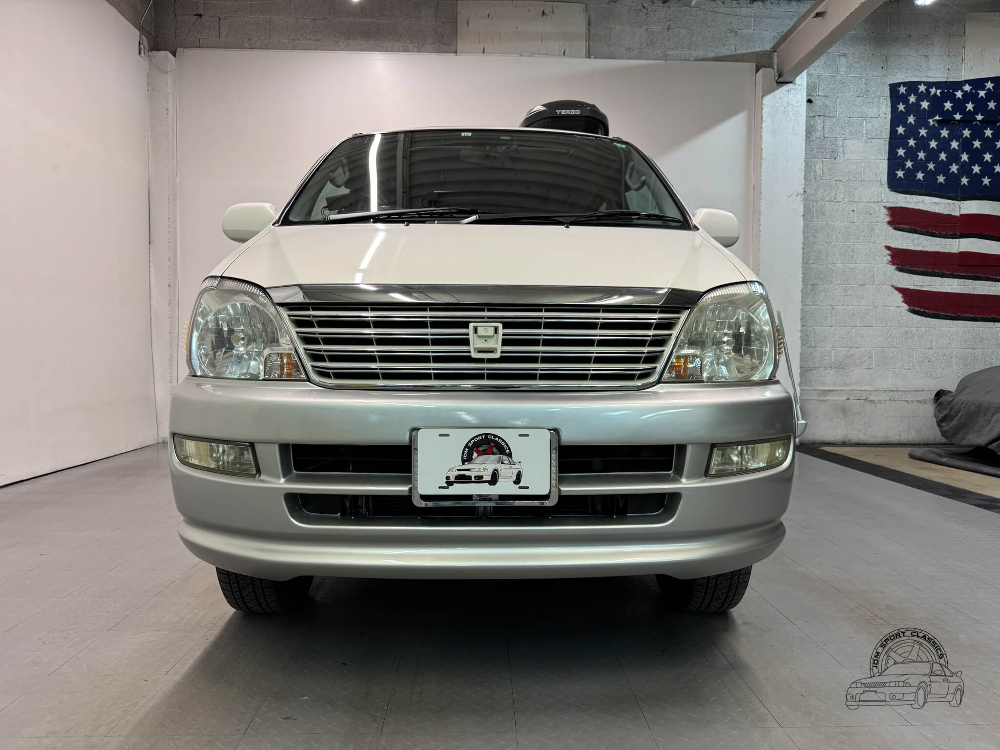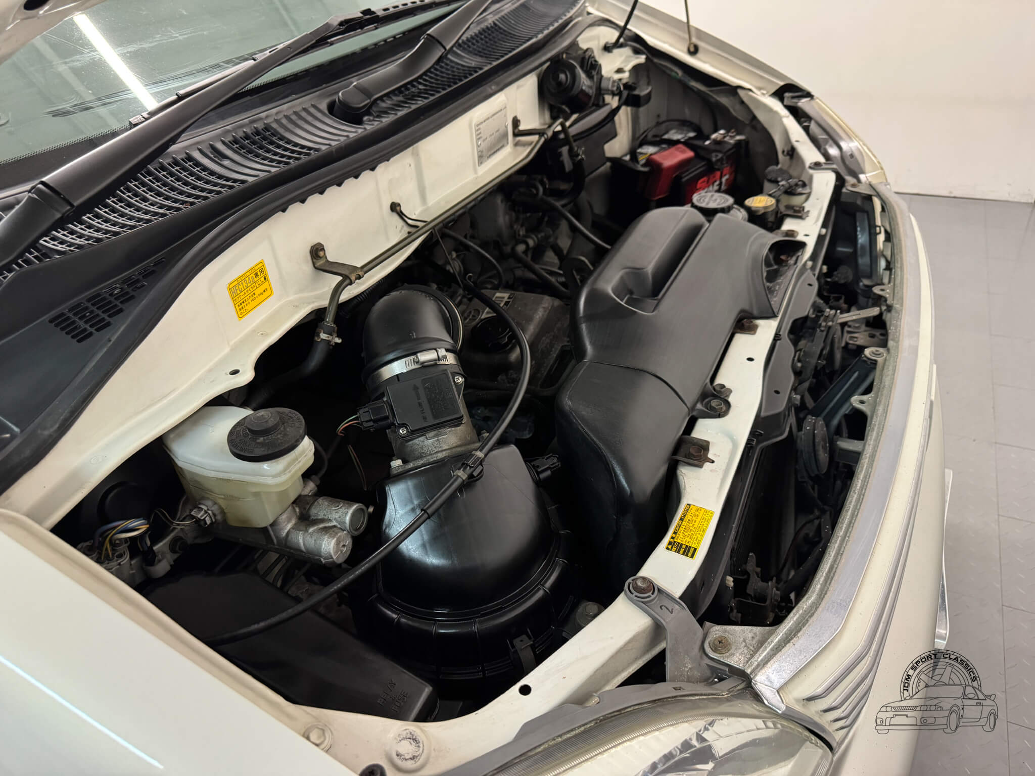 This 1999 Toyota Hiace Regius V L-Package offers a refined take on the traditional Hiace, combining the reliability of the Hiace line with enhanced interior comfort and a more aerodynamic shape. Unlike the typical cab-over model, the Regius features a front-mounted engine design that creates a flat floor, allowing for much easier movement between the front seats and the rear cabin. This 8-seater 4WD example has arrived with only 51,410 verified miles and is finished in a clean two-tone White Mica Pearl and Millennium Silver Metallic. Equipped with full-time 4WD and included rooftop accessories, it is a practical choice for those looking for a functional daily driver, a capable family hauler, or a comfortable foundation for a camping build.