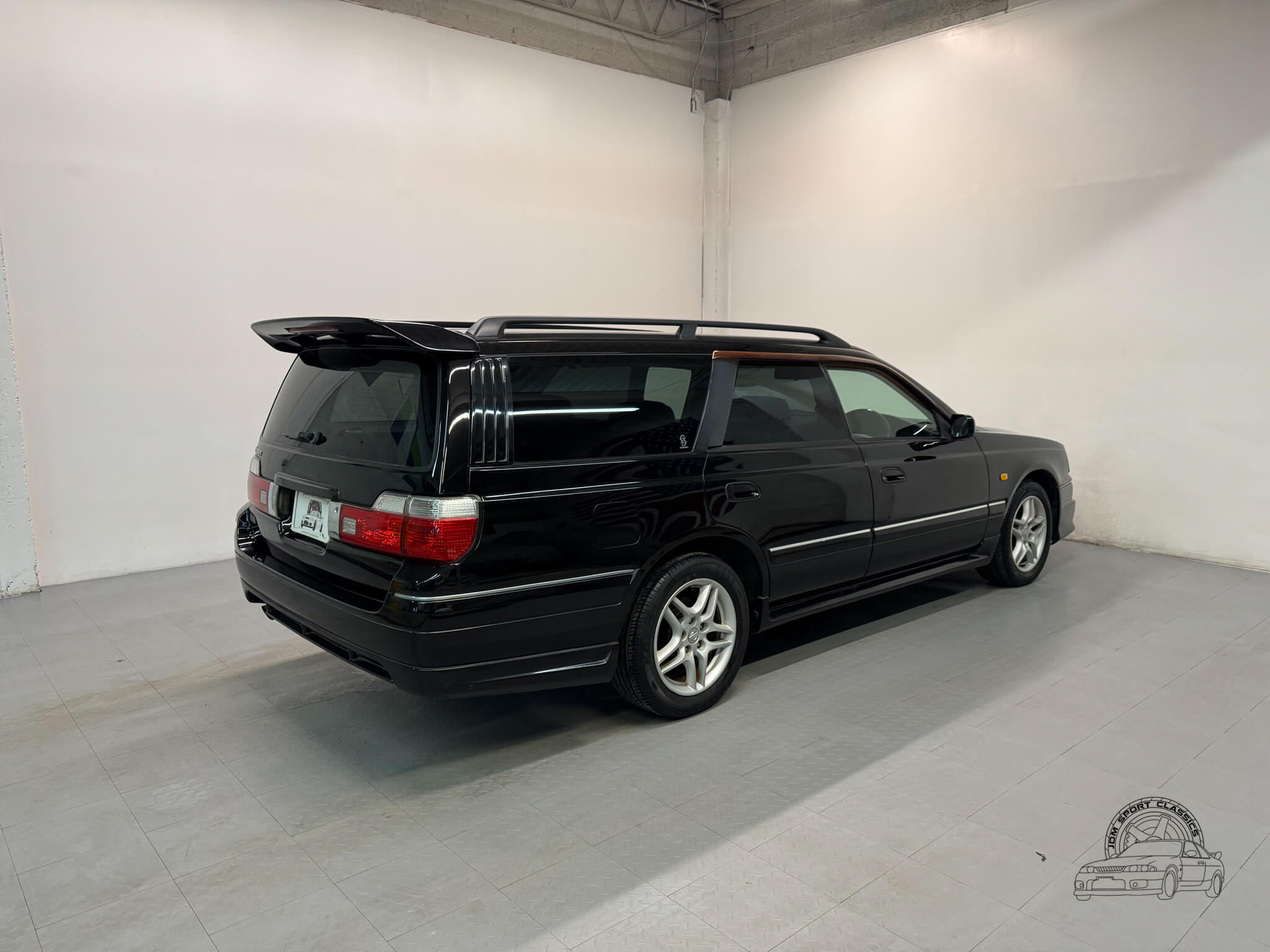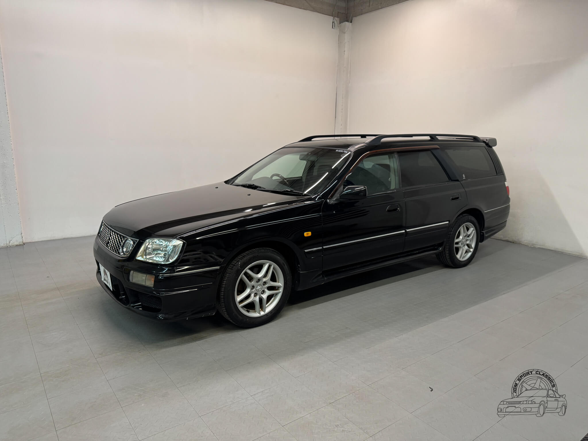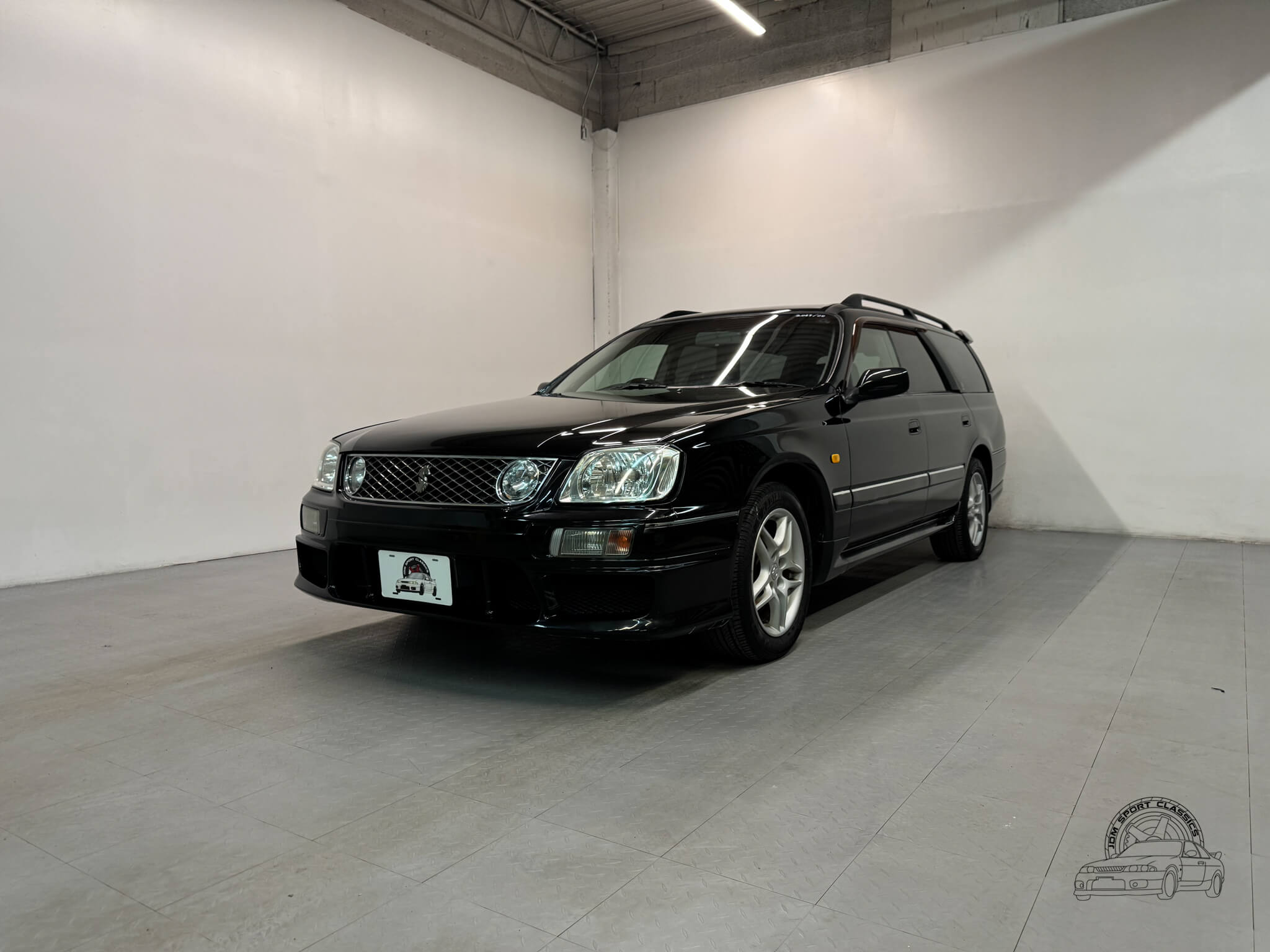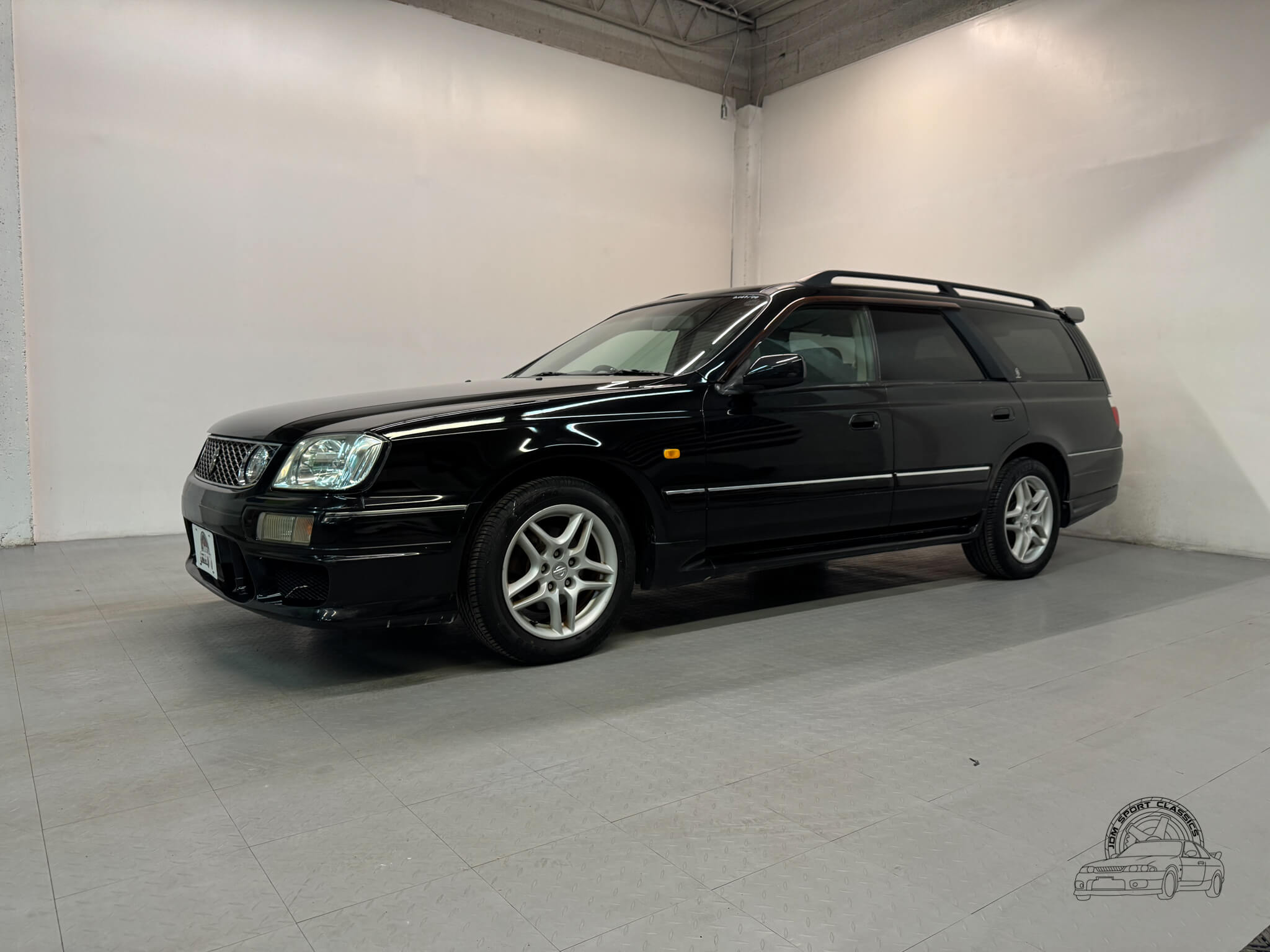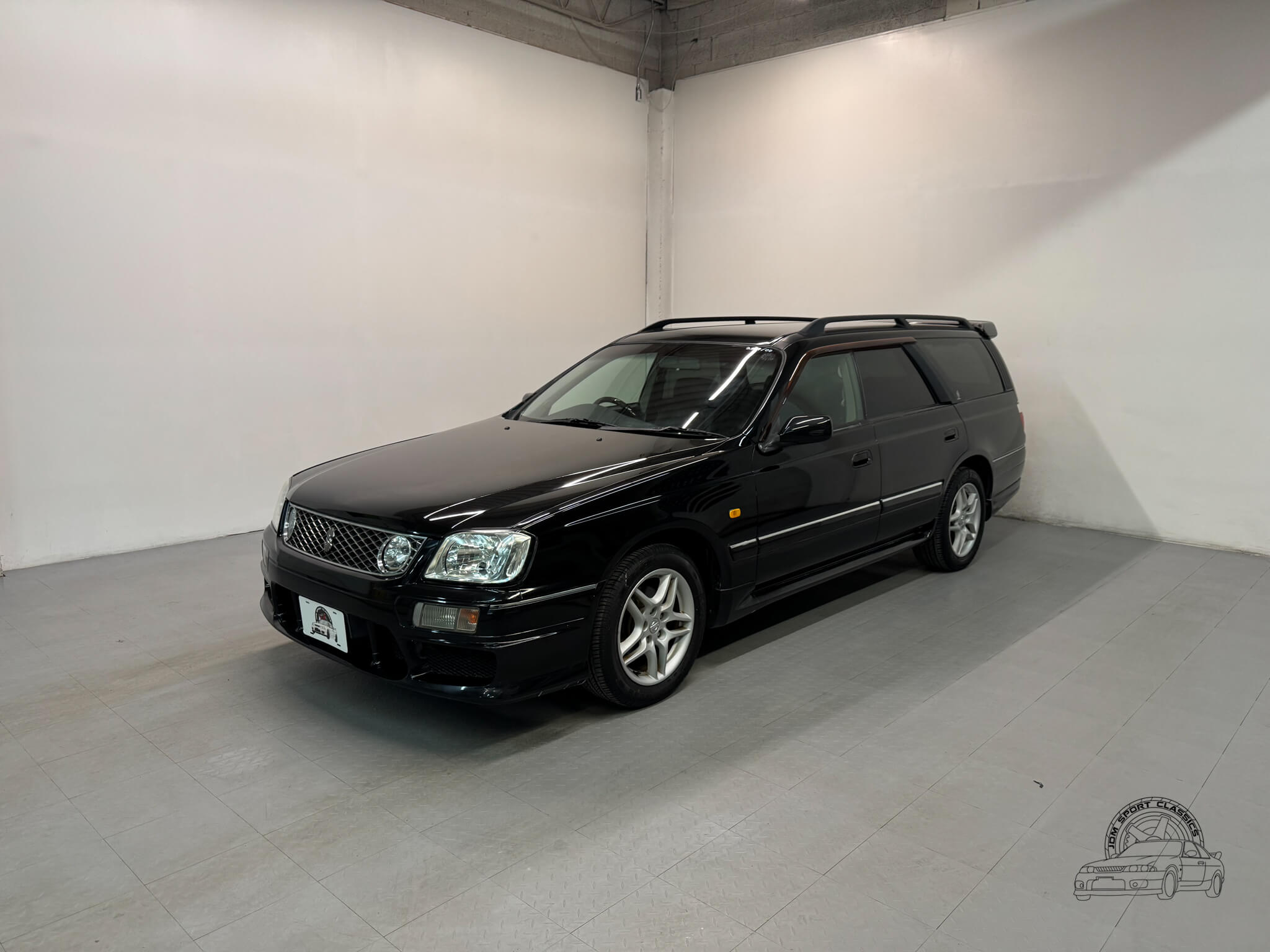 The exterior, finished in Black Pearl (Color Code GV1), remains completely stock while showcasing the upgraded Series 2 Aero styling. Sportier front and rear bumpers, side skirts, and a rear spoiler give the Stagea a sharper, more athletic stance, emphasizing its dynamic lines and timeless body style. Subtle design touches from the Prime Edition complement the aero upgrades, resulting in a cohesive and confident presence that stands out on the road.