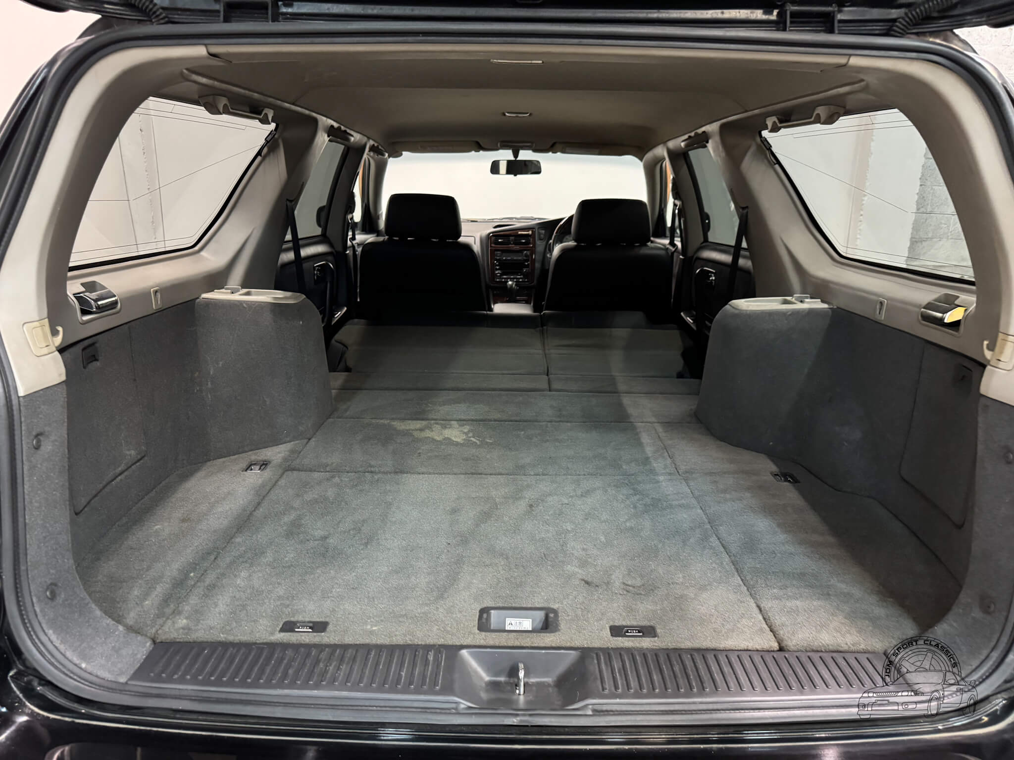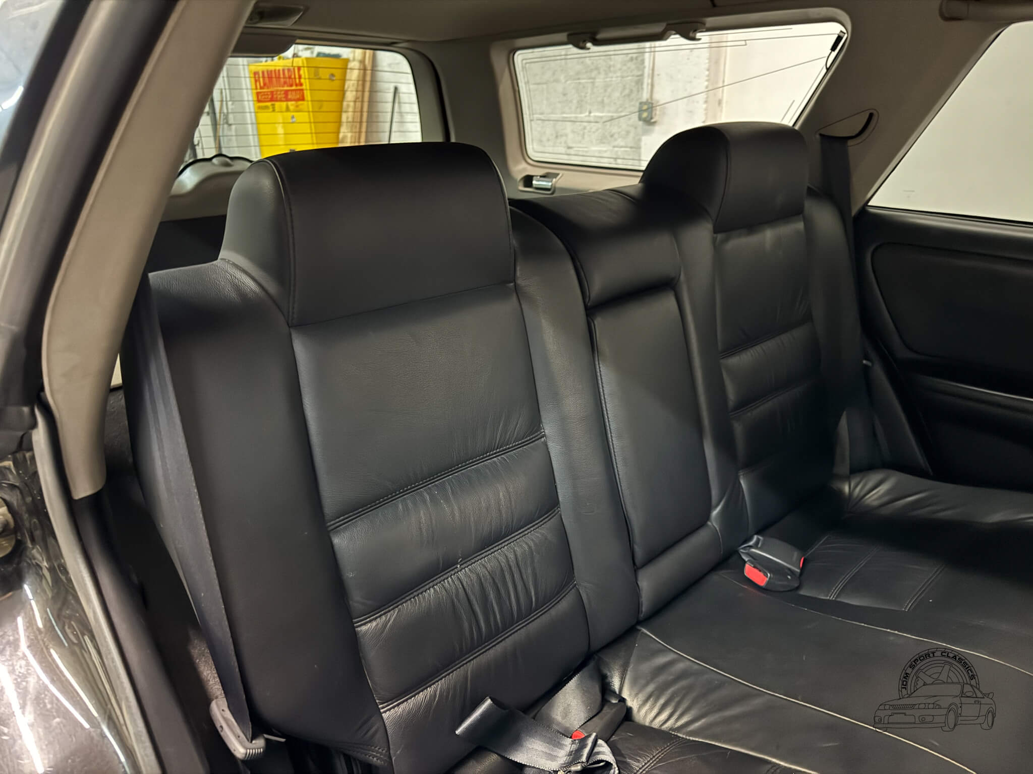 Inside, the cabin is comfortable and well equipped, featuring black leather seats, a power adjusting driver’s seat, power windows, power adjusting mirrors, power door locks and digital climate control with cold A/C and hot heat. The controls are intuitive and the supportive seating makes both short trips and longer drives enjoyable, while tiptronic transmission controls add a more engaging driving experience when desired. The spacious interior is complemented by a generous trunk, offering plenty of cargo room for daily use, weekend trips, or carrying gear, making this Stagea both practical while maintaining its enthusiast appeal.