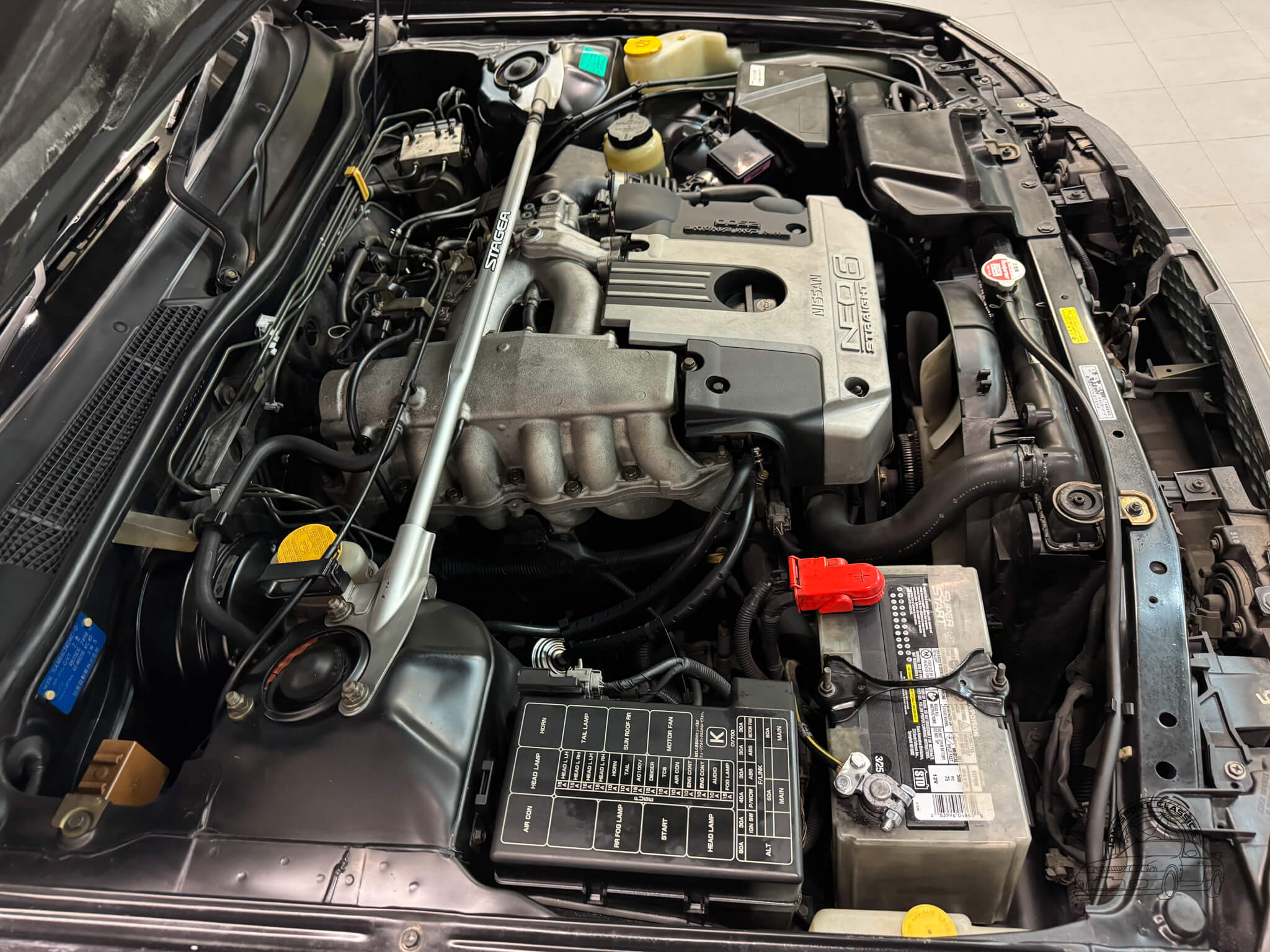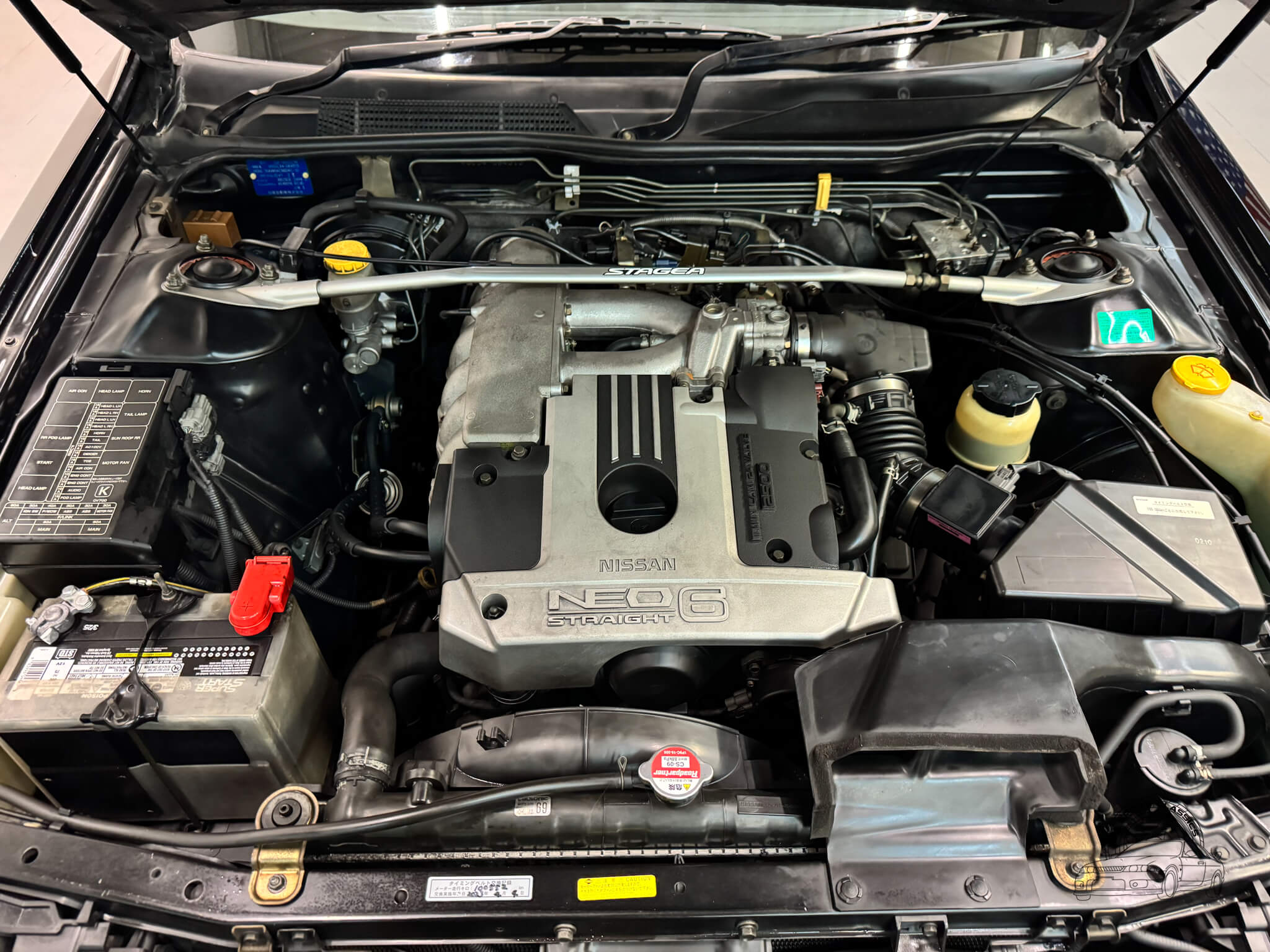 Under the hood sits the 2.5L RB25DE NEO inline-six engine, paired with a 4-speed automatic transmission with tiptronic controls. The NEO offers smoother power delivery and a more responsive feel compared with the standard RB25DE. Combined with the rear wheel drive layout, this Stagea delivers a confident, balanced driving experience while maintaining the mechanical durability Nissan enthusiasts expect.