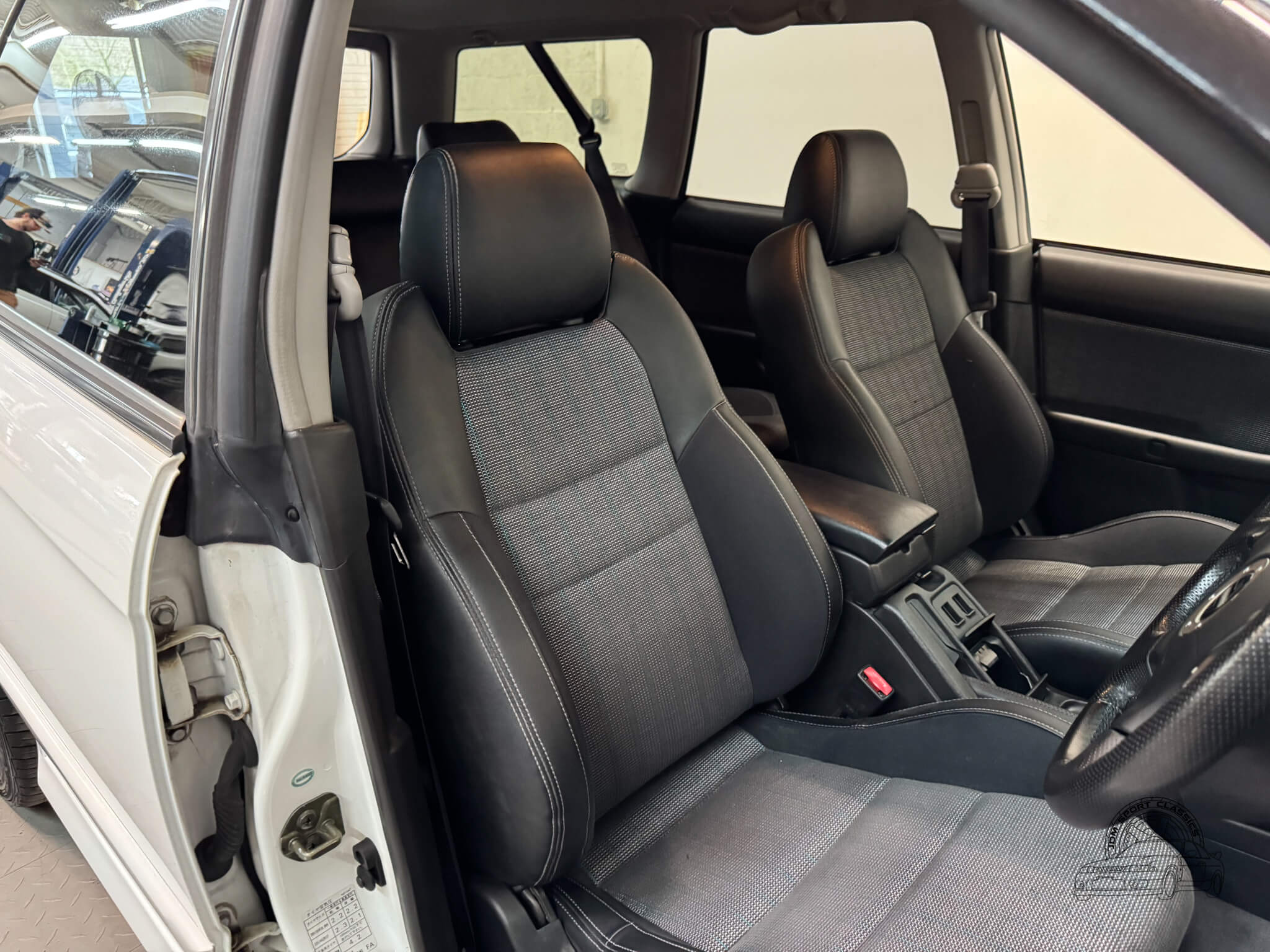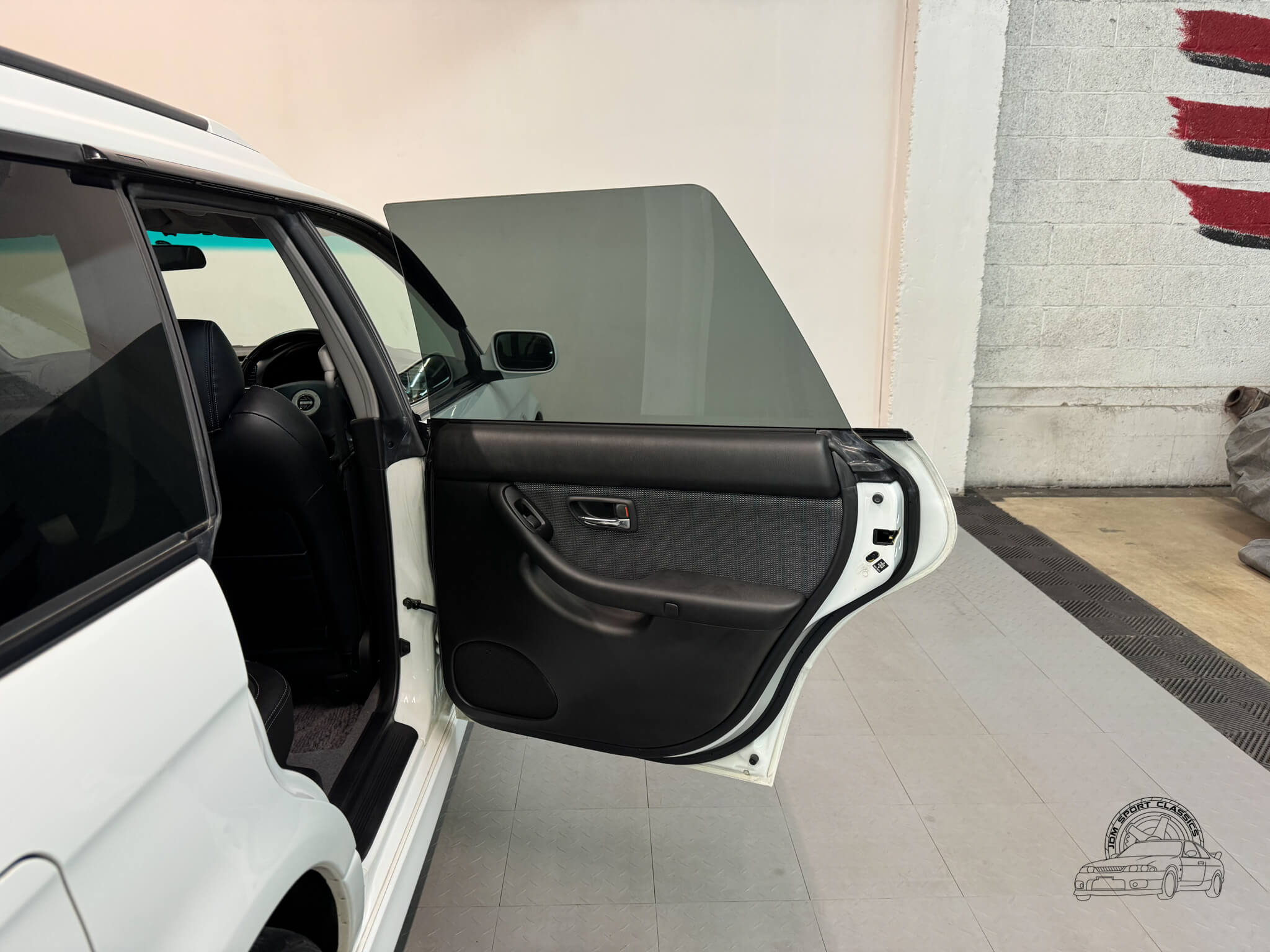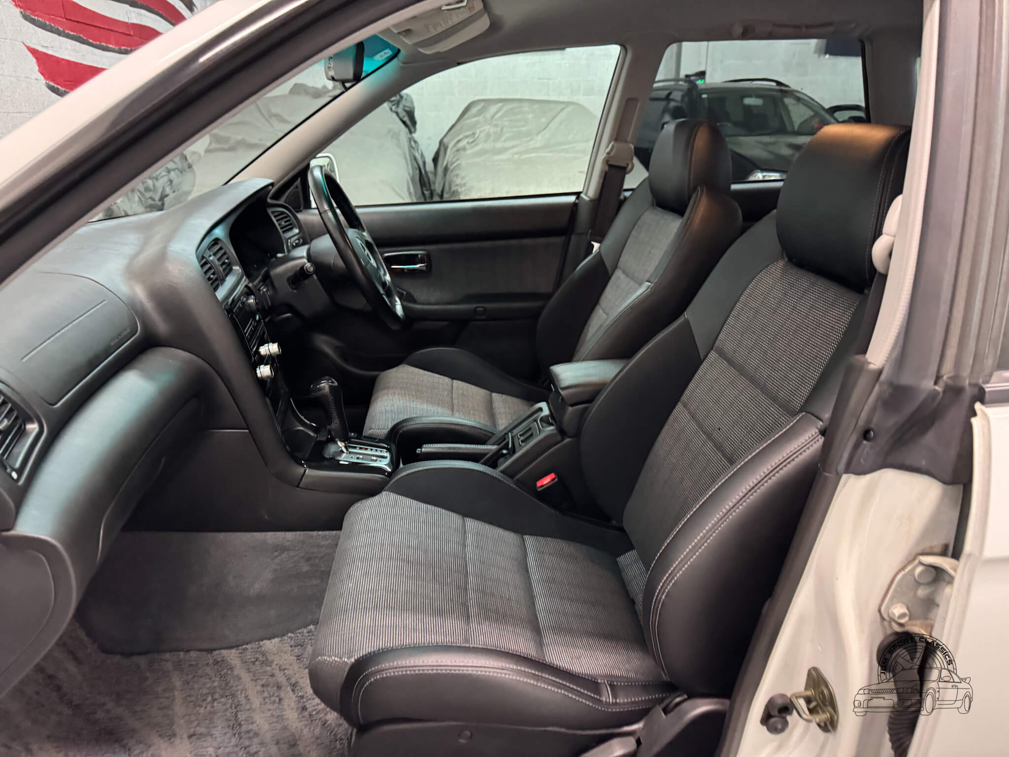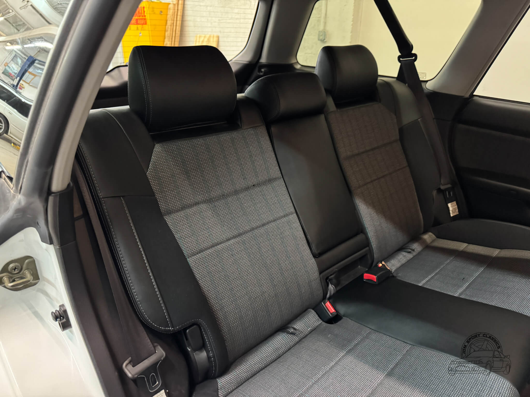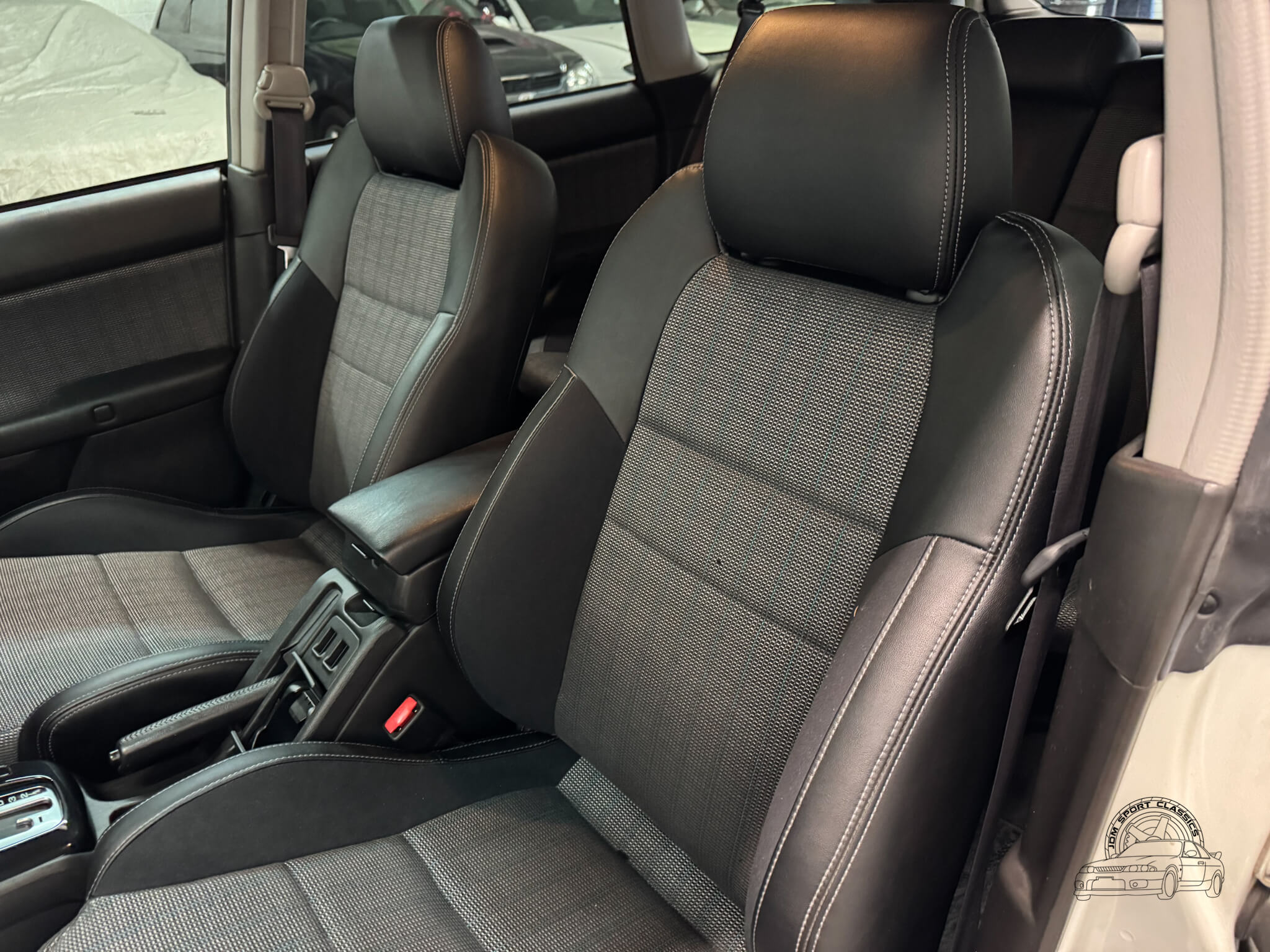 The cabin is built for the driver, balancing functional ergonomics with the refined feel of a high spec JDM sport wagon. This E-Tune features the factory half leather bolstered seats, which offer great lateral support for spirited driving without sacrificing comfort on long hauls. The driver’s seat is power adjustable with lumbar support, allowing for a precise driving position. Everything inside works as it should, from the ice cold A/C and powerful heater to the power folding mirrors and windows. Ample storage options like rear cubbies, a cargo net, and a privacy cover make it a versatile daily, while the folding rear seats provide the extra utility expected from a Legacy. It is a clean, well cared for interior that clearly reflects its one owner history.