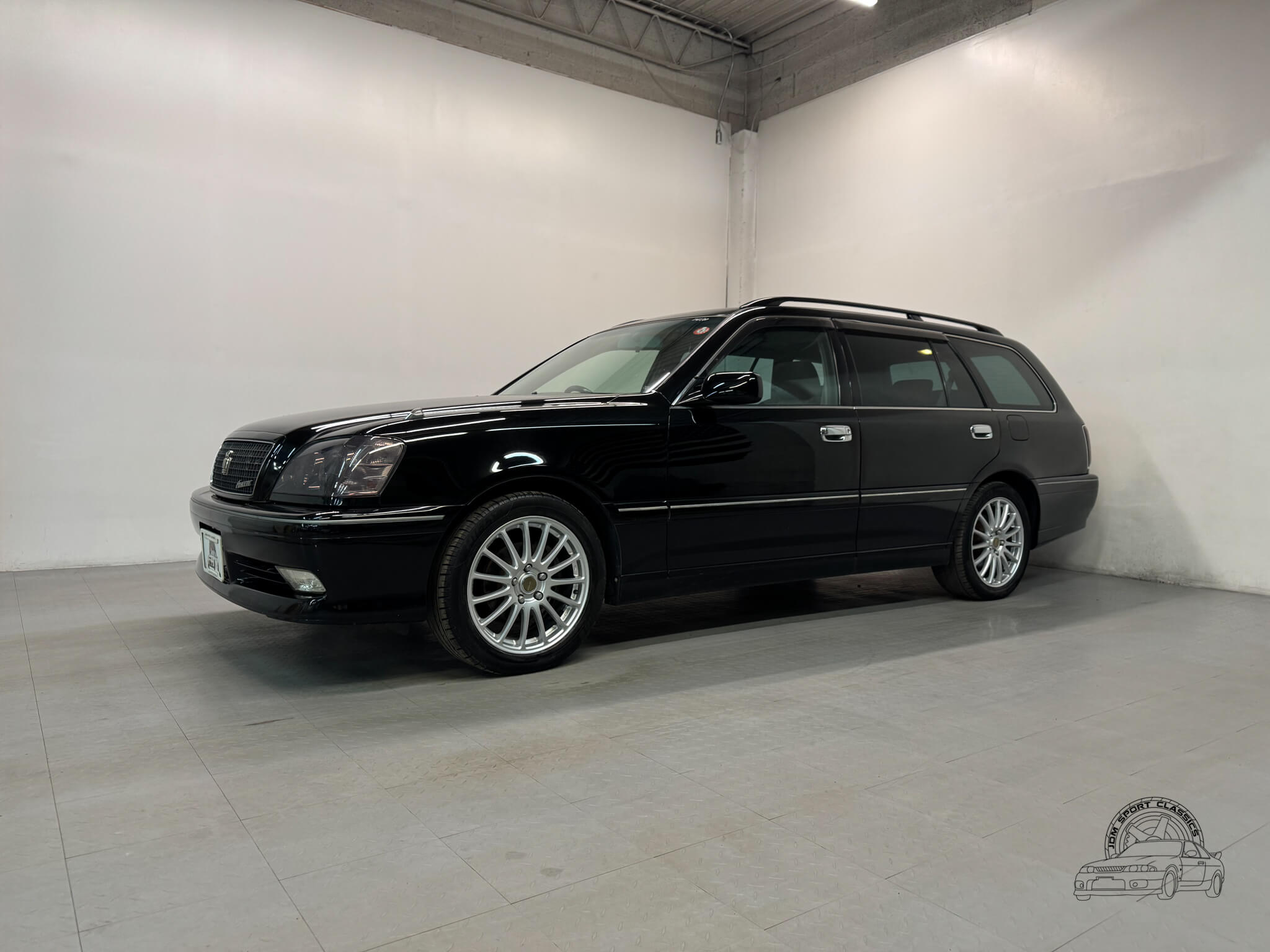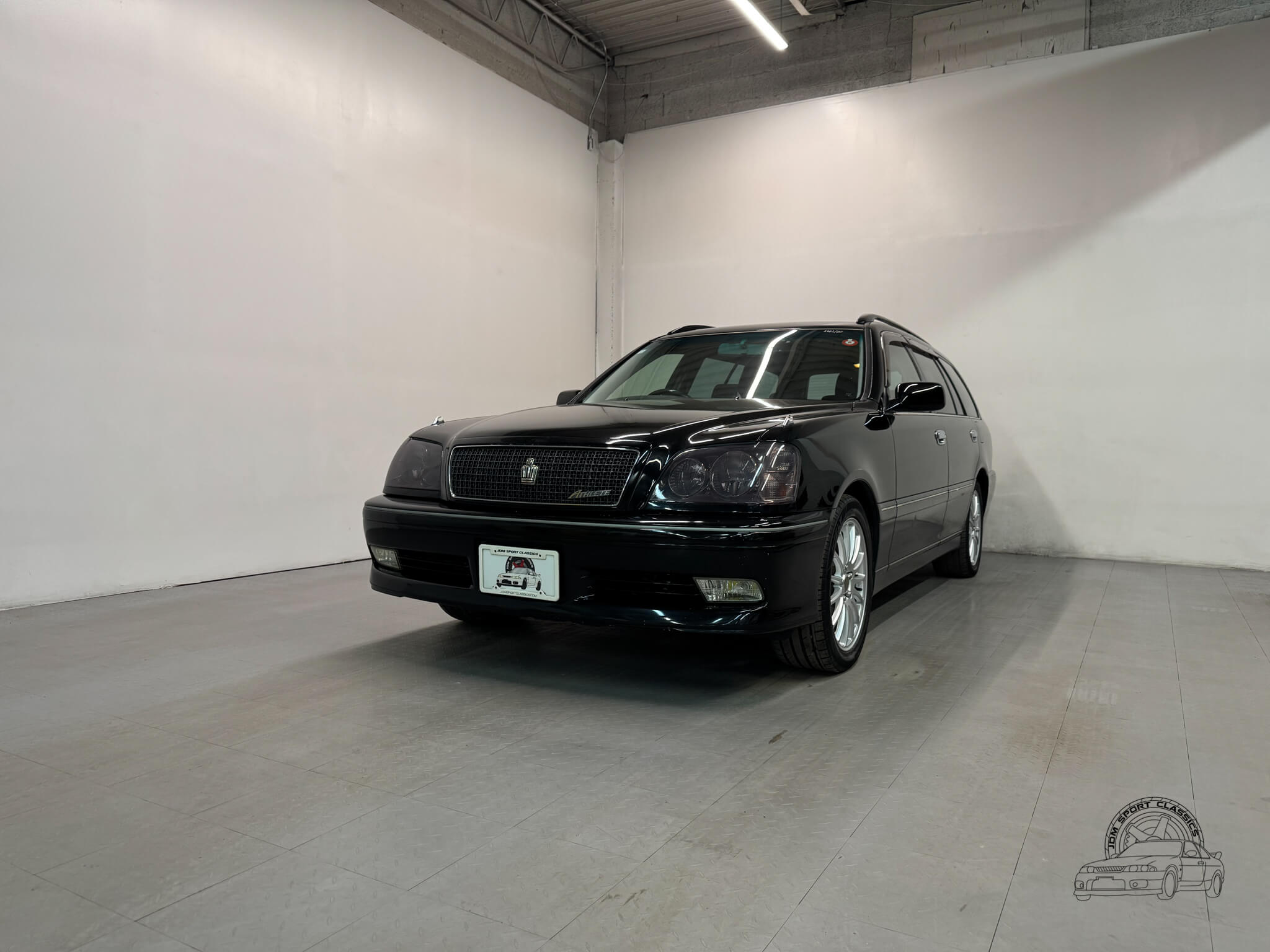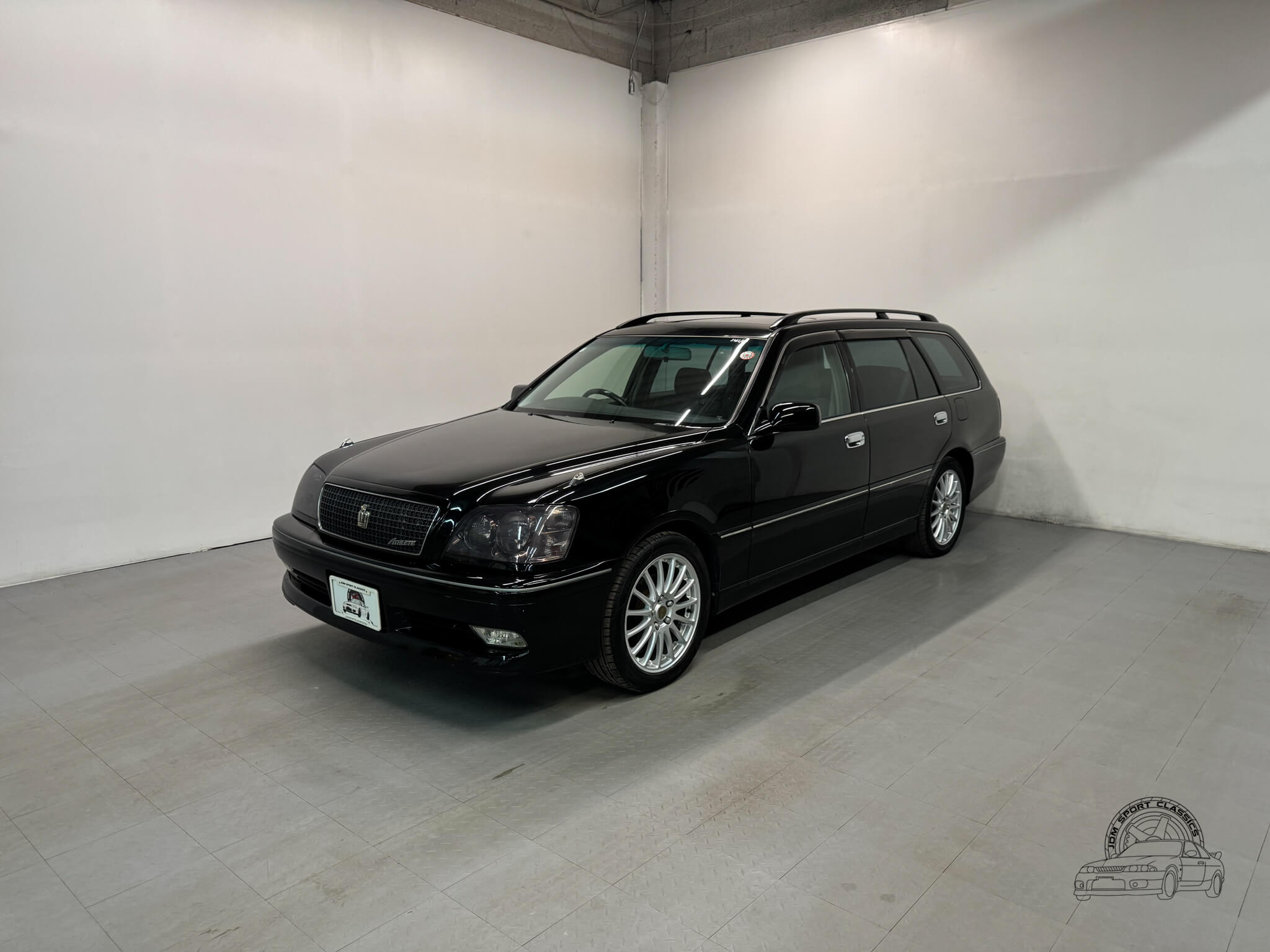 This 2000 Toyota Crown Estate Athlete is a rare Premium Sports Selection model finished in factory Black Onyx with color code 202. This specific trim was a limited run edition designed to bridge the gap between the luxury focused Royal series and the performance oriented Athlete V turbo models. It was created for the driver who wanted the sharper Athlete styling and tightened chassis, but preferred the reliability and linear power of a naturally aspirated straight six. Sold exclusively in the Japanese Domestic Market, this JZS171W offers the opportunity to own a clean, honest example of the 170-series Crown with just 83,134 verified miles.