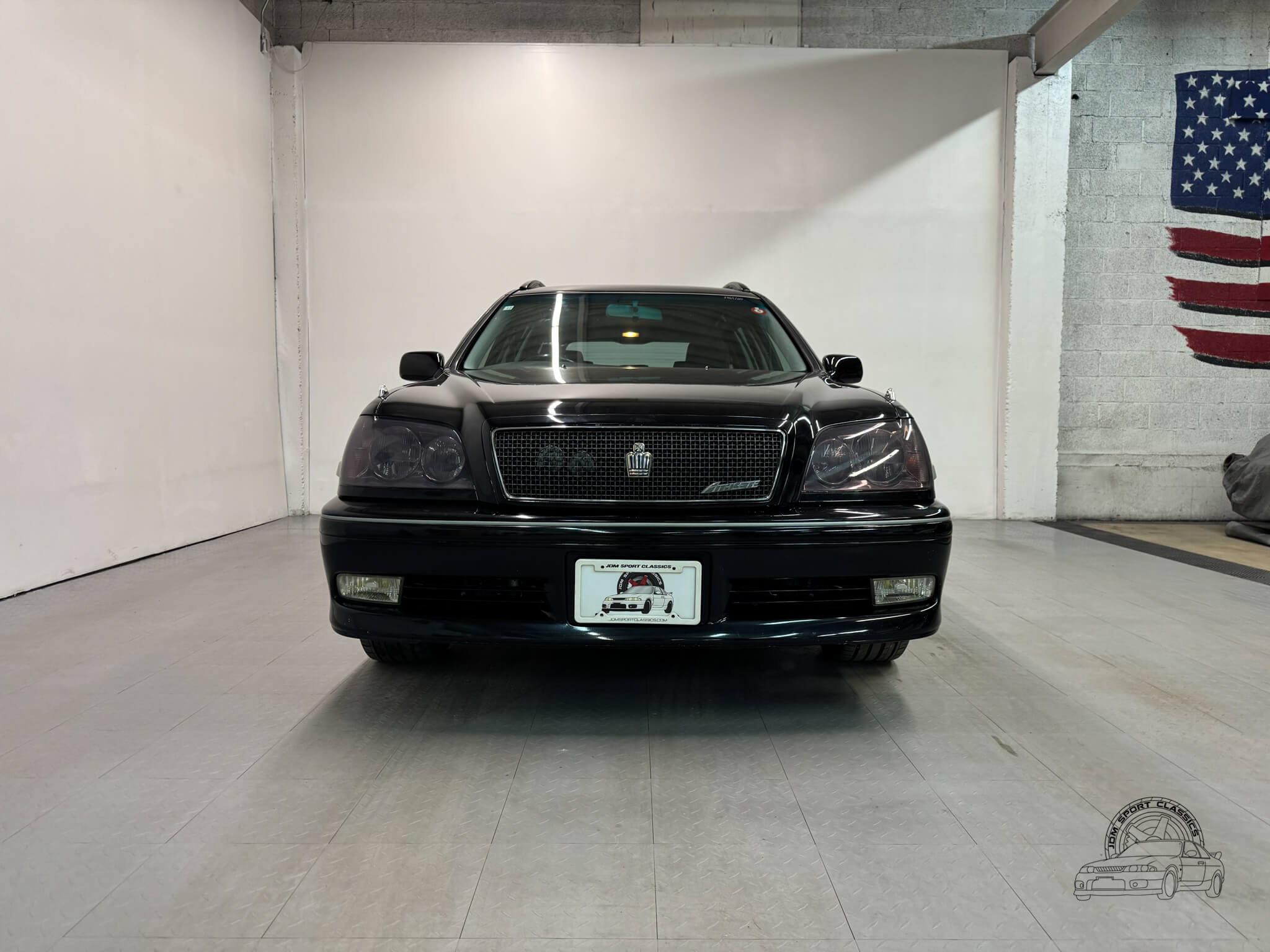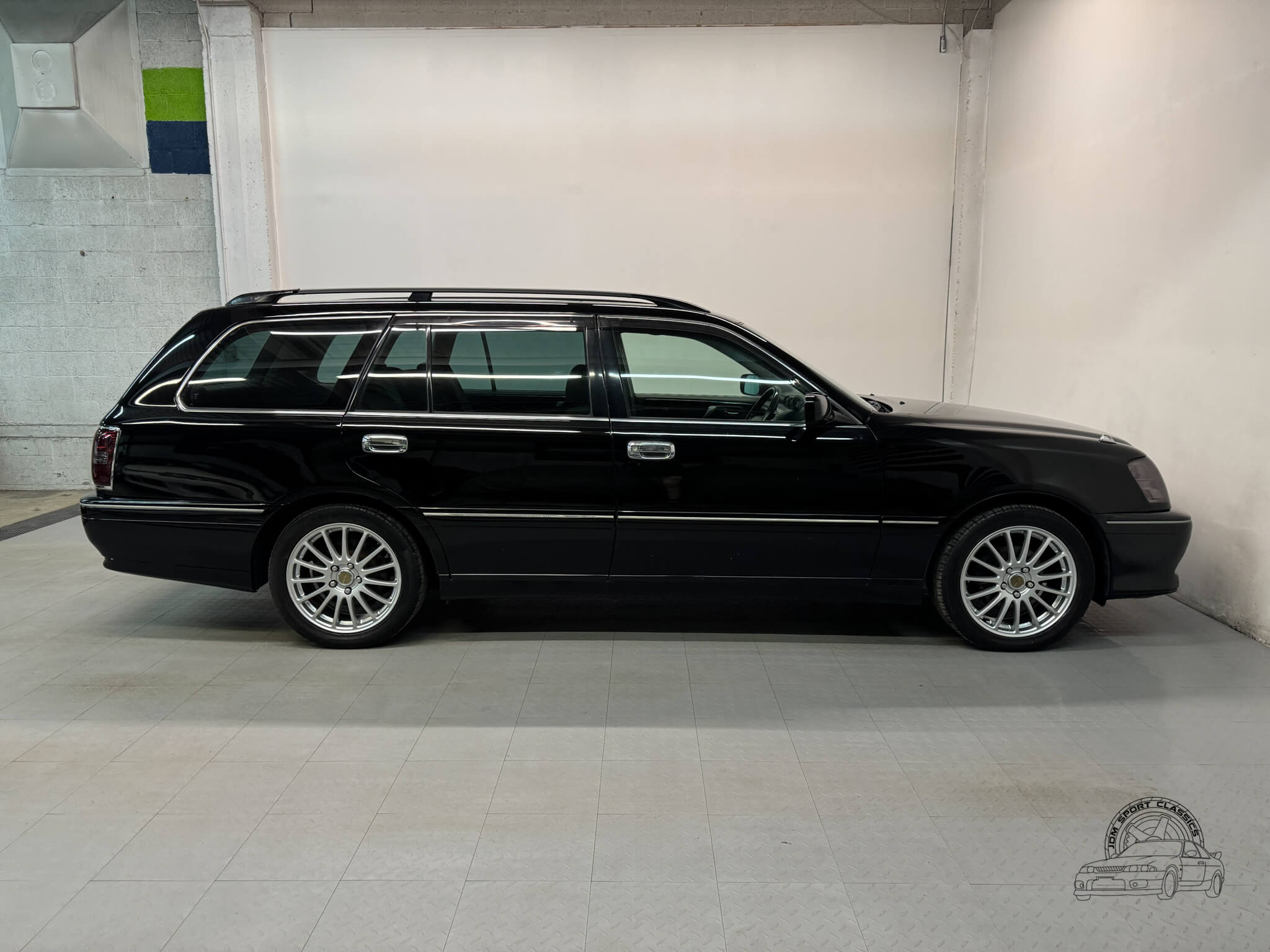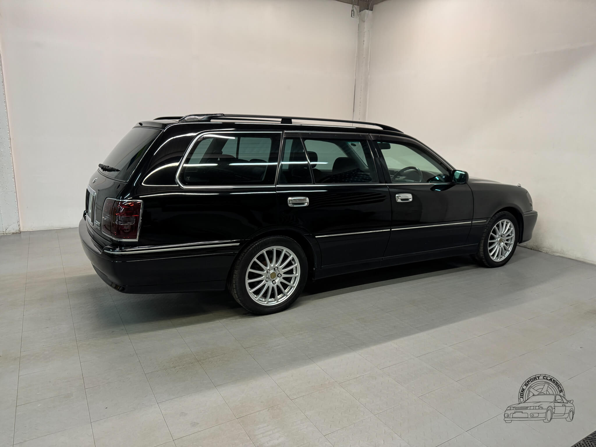 This 2000 Toyota Crown Estate Athlete is a rare Premium Sports Selection model finished in factory Black Onyx with color code 202. This specific trim was a limited run edition designed to bridge the gap between the luxury focused Royal series and the performance oriented Athlete V turbo models. It was created for the driver who wanted the sharper Athlete styling and tightened chassis, but preferred the reliability and linear power of a naturally aspirated straight six. Sold exclusively in the Japanese Domestic Market, this JZS171W offers the opportunity to own a clean, honest example of the 170-series Crown with just 83,134 verified miles.